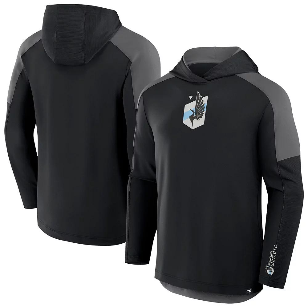 Sport Minnesota United FC colors proudly with this Red Card Transitional Pullover Hoodie by Fanatics. Its two-tone design features stretch jersey fabric and micro polyester for a flexible, lightweight feel. The rounded droptail hem gives this Minnesota United FC hoodie a more comfortable fit.Sport Minnesota United FC colors proudly with this Red Card Transitional Pullover Hoodie by Fanatics. Its two-tone design features stretch jersey fabric and micro polyester for a flexible, lightweight feel. The rounded droptail hem gives this Minnesota United FC hoodie a more comfortable fit.PRODUCT FEATURESRounded droptail hemLong sleeveHeat-sealed club crestImportedStretch jersey fabric with lightweight feel (160 gsm)PulloverOfficially licensedClub wordmark screen printed on left sleeveMachine wash, tumble dry lowHoodedMaterial: 92% Polyester/8% Spandex - Body; 100% Polyester - SleevesBrand: FanaticsMicro polyester on bottom half of sleeves (155 gsm) Size: 3XL. Color: Mfc Black. Gender: male. Age Group: adult.