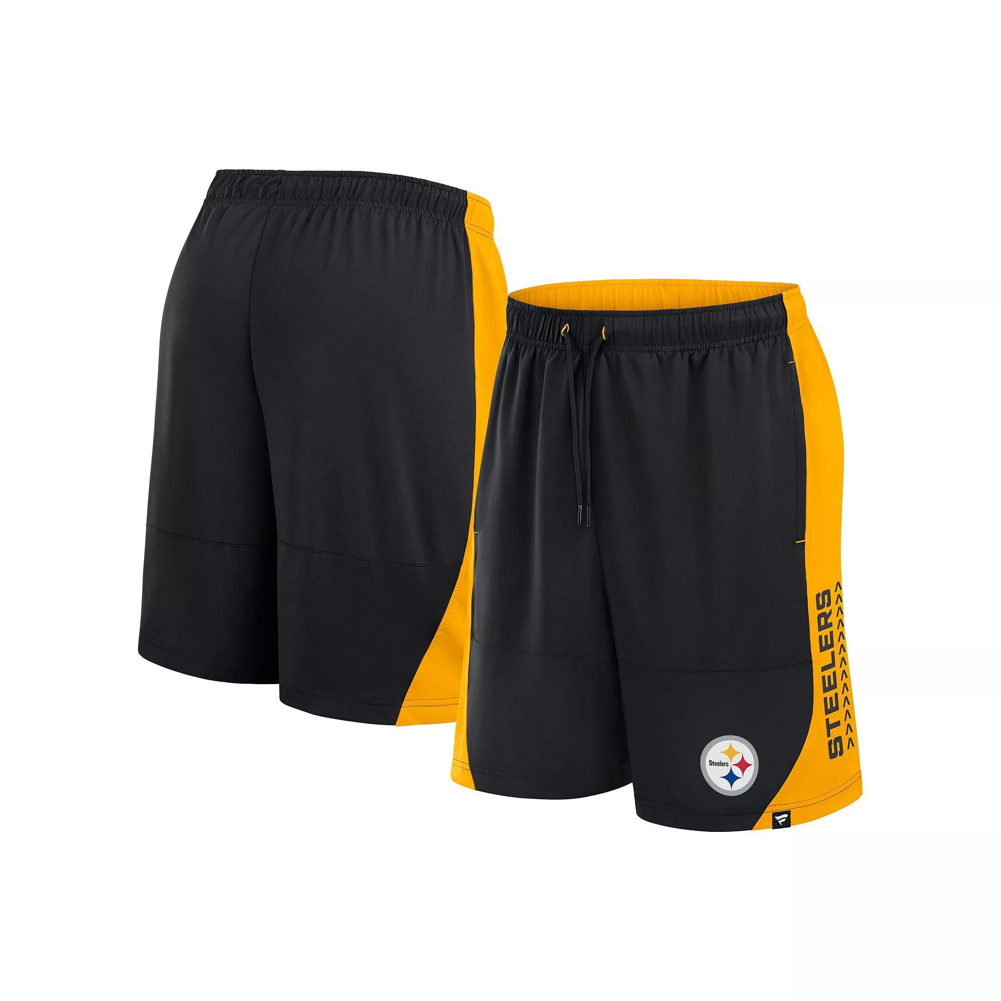 These No Defense Shorts by Fanatics are ideal for Pittsburgh Steelers game day or casual wear. Lightweight, breathable polyester fabric is blended with spandex for enhanced flexibility, while an adjustable waistband ensures the most comfortable fit. Two side pockets add convenient storage to these Pittsburgh Steelers shorts.These No Defense Shorts by Fanatics are ideal for Pittsburgh Steelers game day or casual wear. Lightweight, breathable polyester fabric is blended with spandex for enhanced flexibility, while an adjustable waistband ensures the most comfortable fit. Two side pockets add convenient storage to these Pittsburgh Steelers shorts.PRODUCT FEATURESDrawstring waistband provides a customizable fitOfficially licensedMachine wash, tumble dry lowScreen printed team logo and nameInseam measures approx. 7Elastic waistbandBrand: FanaticsImportedStretch jersey fabric has a lightweight feel (160gsm)Side slits at bottom hemMaterial: 92% Polyester/8% SpandexTwo side pockets Color: Black. Gender: male. Age Group: adult.