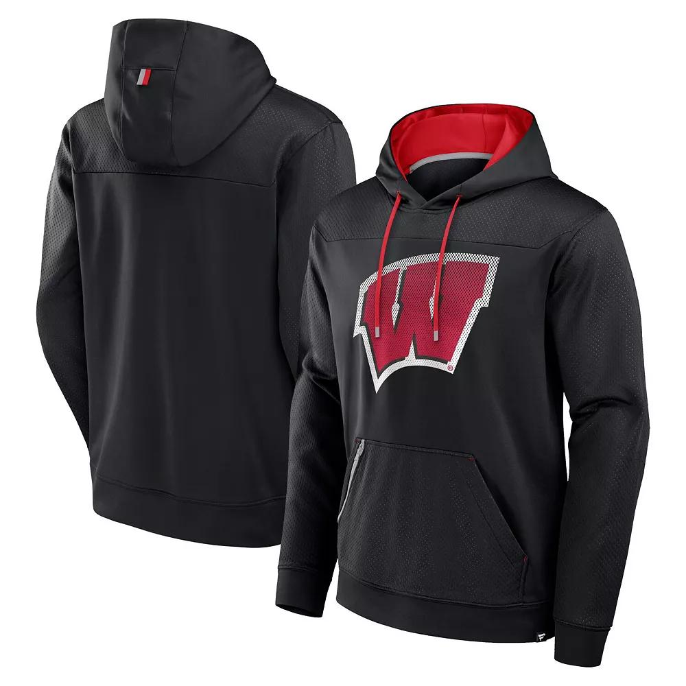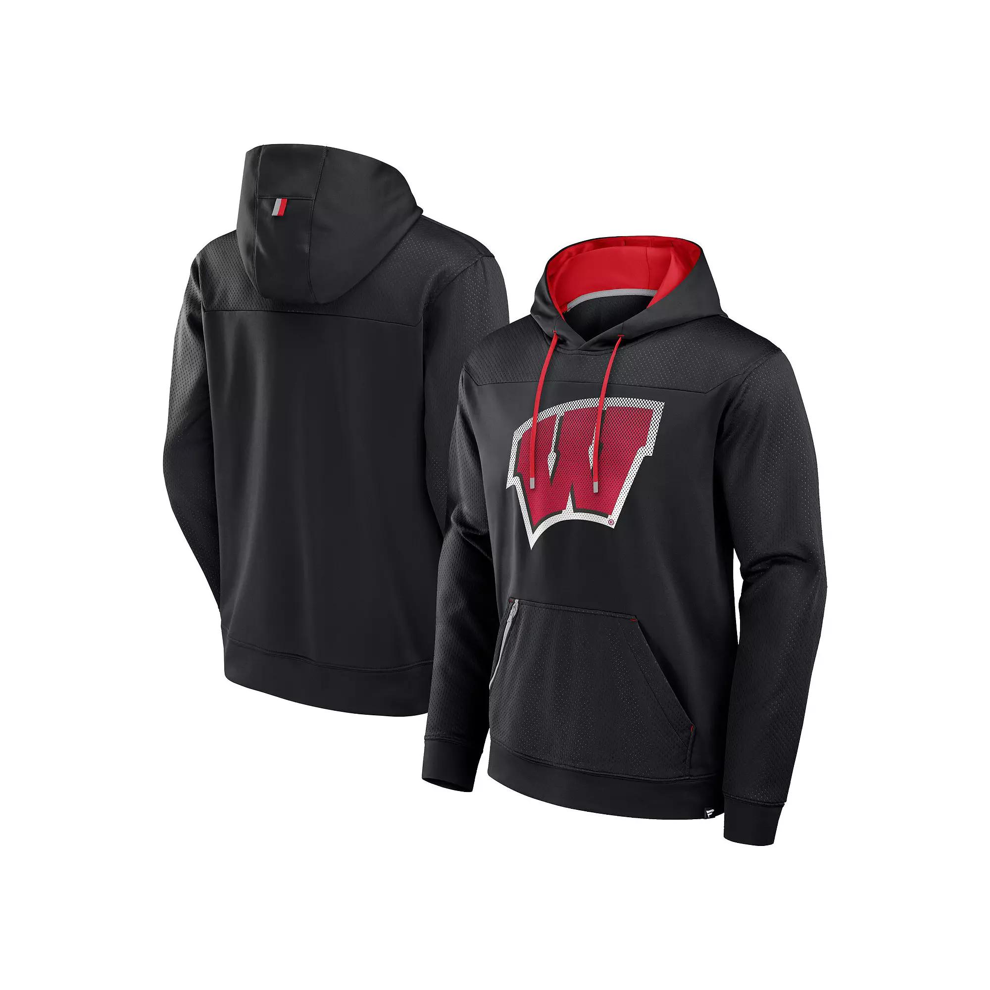 Stay warm while repping the Wisconsin Badgers with this Defender Dot Faded Primary Pullover Hoodie from Fanatics. This stylish hoodie features screen print team logo graphics with unique dot fade details at the chest, ensuring you stand out as a dedicated Wisconsin Badgers fan. The mesh overlay at the shoulders, sleeves and pouch pocket adds breathability, while the contrast-color hood lining and drawstrings deliver an extra pop of team spirit.Stay warm while repping the Wisconsin Badgers with this Defender Dot Faded Primary Pullover Hoodie from Fanatics. This stylish hoodie features screen print team logo graphics with unique dot fade details at the chest, ensuring you stand out as a dedicated Wisconsin Badgers fan. The mesh overlay at the shoulders, sleeves and pouch pocket adds breathability, while the contrast-color hood lining and drawstrings deliver an extra pop of team spirit.PRODUCT FEATURESImportedOfficially licensedMachine wash, tumble dry lowHoodedLong sleeveZippered pocket over right side of pouch pocket for extra storageMidweight hoodie suitable for moderate temperaturesContrast-color hood lining and drawstringsScreen print team logo graphics with dot fade details at chestPulloverMaterial: 100% PolyesterFront pouch pocket for extra warmth or storing small itemsBrand: FanaticsMesh overlay at shoulders, sleeves and pouch pocket Color: Black. Gender: male. Age Group: adult.