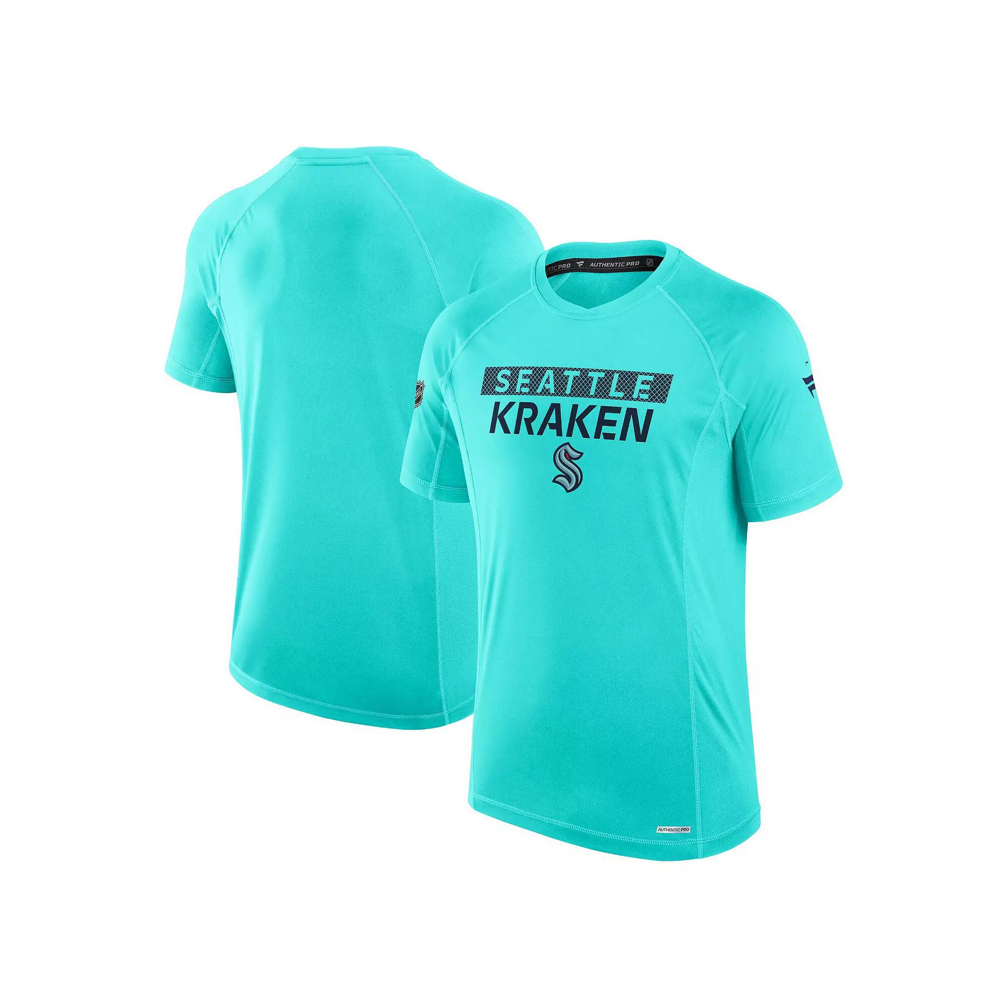 The Authentic Pro Rink Tech T-Shirt is the perfect way to show your love for the Seattle Kraken. Made from lightweight, breathable polyester-elastane mesh, this t-shirt keeps you cool and comfortable during the hotter days. The crew neck and heat-sealed graphics add a stylish touch, while the official Seattle Kraken logo proudly displays your team spiritThe Authentic Pro Rink Tech T-Shirt is the perfect way to show your love for the Seattle Kraken. Made from lightweight, breathable polyester-elastane mesh, this t-shirt keeps you cool and comfortable during the hotter days. The crew neck and heat-sealed graphics add a stylish touch, while the official Seattle Kraken logo proudly displays your team spiritPRODUCT FEATURESMachine wash, tumble dry lowBrand: FanaticsShort sleeveMaterial: 92% Polyester/8% ElastaneImportedScreen print graphicsOfficially licensed Size: XL. Color: Krk Blue. Gender: male. Age Group: adult.