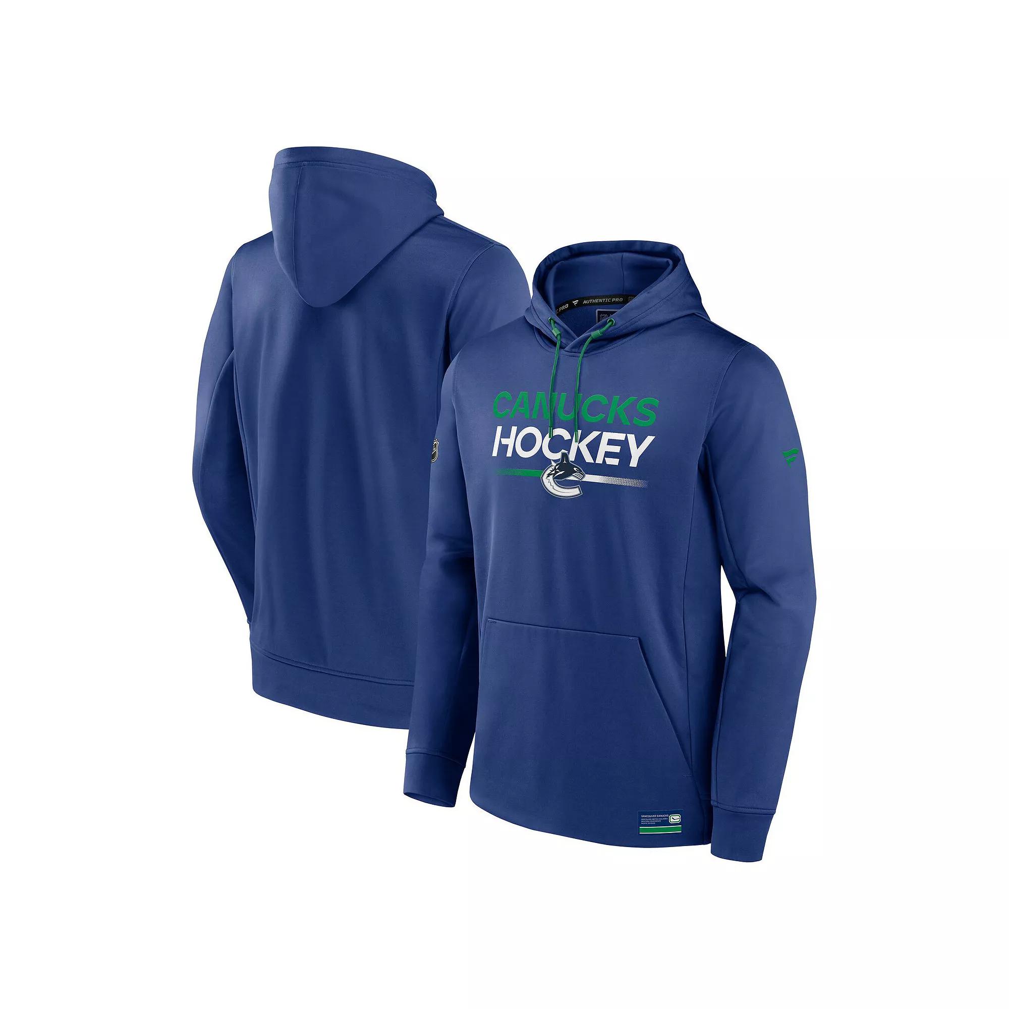 Stay warm while repping your Vancouver Canucks with this Fanatics Fleece Pullover Hoodie. It features a heat-sealed team wordmark with logo underneath, making it clear who you cheer for on the ice. A fleece lining provides an extra layer of warmth, making this a great hoodie for moderate temperatures.Stay warm while repping your Vancouver Canucks with this Fanatics Fleece Pullover Hoodie. It features a heat-sealed team wordmark with logo underneath, making it clear who you cheer for on the ice. A fleece lining provides an extra layer of warmth, making this a great hoodie for moderate temperatures.PRODUCT FEATURESSewn-on woven applique at bottom left hemPulloverMaterial: 100% Polyester - Body; 92% Polyester/8% Elastane - MeshAdjustable drawstring hoodHeat-sealed team wordmark with logo under across frontMidweight hoodie suitable for moderate temperaturesLong sleeveFront pouch pocket helps with organization of small itemsOfficially licensedImportedHoodedMesh hood liningMachine wash, tumble dry lowBrand: FanaticsAuthentic Pro collection replicates the gear of players, coaches and trainersFleece lining provides an extra layer of warmth Color: Cnk Blue. Gender: male. Age Group: adult. Material: COTTON.