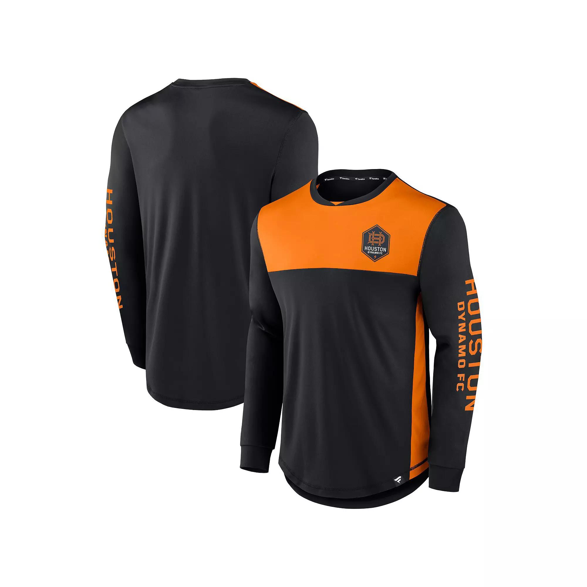 Upgrade your Houston Dynamo FC collection with this dashing Striker T-shirt from Fanatics Branded. Designed with classic Houston Dynamo FC details on the chest and along the arm, this shirt is perfect for match days or everyday wear. The rounded droptail hem provides extra coverage, and the lightweight fabric ensures total comfort with every wear.Upgrade your Houston Dynamo FC collection with this dashing Striker T-shirt from Fanatics Branded. Designed with classic Houston Dynamo FC details on the chest and along the arm, this shirt is perfect for match days or everyday wear. The rounded droptail hem provides extra coverage, and the lightweight fabric ensures total comfort with every wear.PRODUCT FEATURESImportedRounded droptail hem with side splitsLong sleeveBrand: Fanatics BrandedMachine wash, tumble dry lowCrew neckContrast-color inset at neck collar and sidesFlatlock stitching detailOfficially licensedHeat-sealed graphics Color: Dyn Black. Gender: male. Age Group: adult.