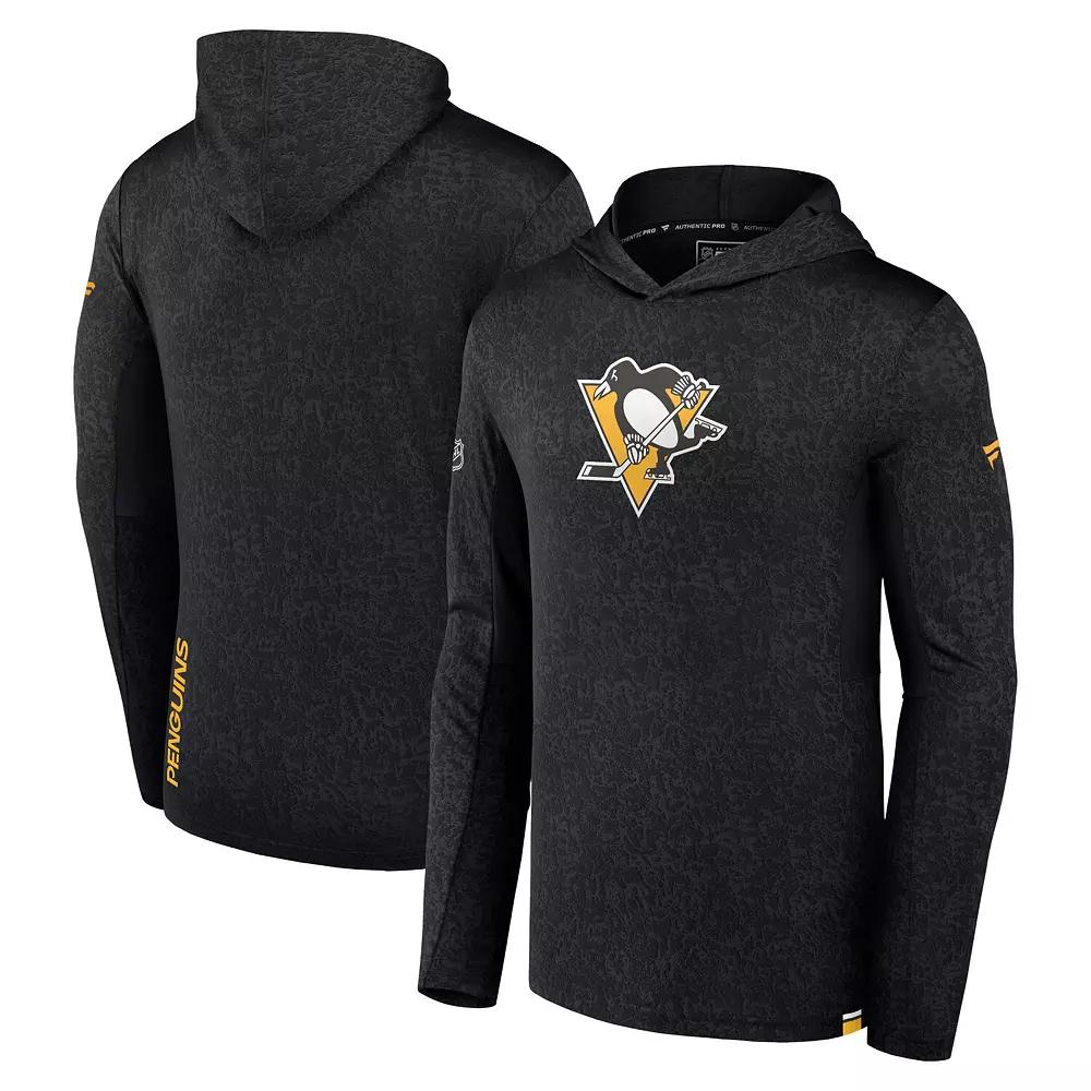 The Mens Fanatics Branded Black Pittsburgh Penguins Authentic Pro Lightweight Pullover Hoodie is the perfect way to show your support for the Pittsburgh Penguins. Made from lightweight polyester, this hoodie is ideal for mild temperatures and features heat-sealed graphics that will keep you looking sharp. The sublimated pattern adds a touch of style, and the officially licensed Pittsburgh Penguins logo proudly displays your team pride.The Mens Fanatics Branded Black Pittsburgh Penguins Authentic Pro Lightweight Pullover Hoodie is the perfect way to show your support for the Pittsburgh Penguins. Made from lightweight polyester, this hoodie is ideal for mild temperatures and features heat-sealed graphics that will keep you looking sharp. The sublimated pattern adds a touch of style, and the officially licensed Pittsburgh Penguins logo proudly displays your team pride.PRODUCT FEATURESBrand: Fanatics BrandedOfficially licensedImportedHoodedSublimated patternLong sleeveMaterial: 100% PolyesterMachine wash, tumble dry lowLightweight hoodie suitable for mild temperaturesPulloverHeat-sealed graphics Gender: male. Age Group: adult.
