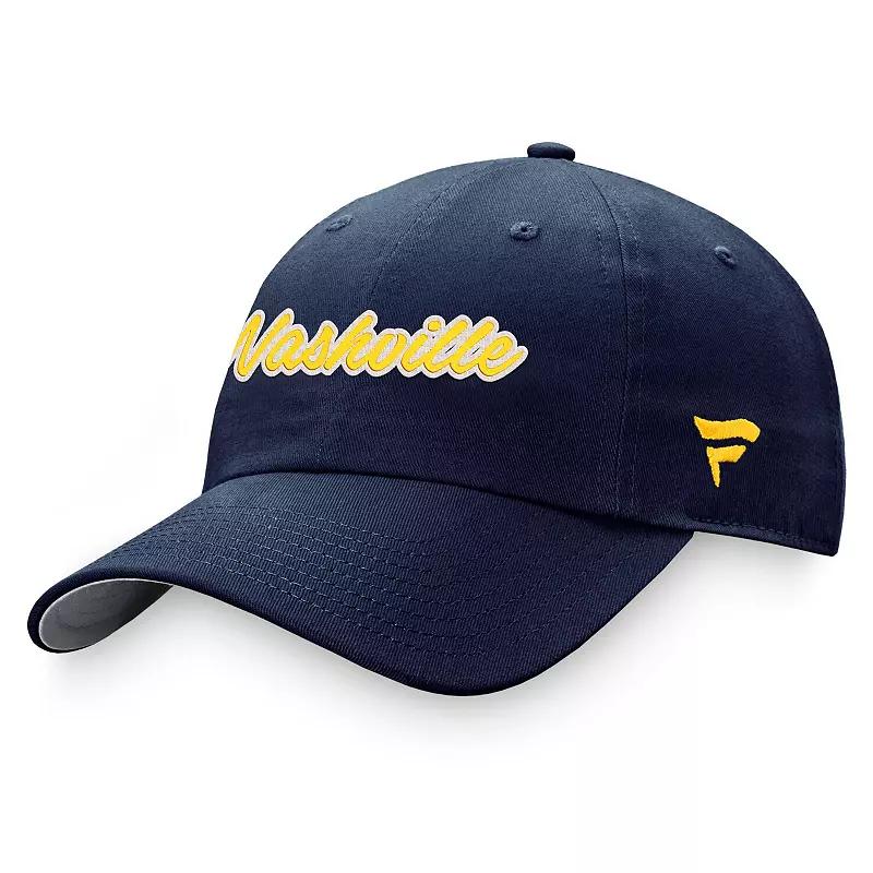 Pay a nod to your favorite NHL squad by sporting this bold Nashville Predators Breakaway adjustable hat from Fanatics up top. It features unmistakable Nashville Predators graphics embroidered across the front panels and an unstructured design that makes this cap the perfect focal point in any casual, team-inspired ensemble. Plus, the snap buckle closure easily adjusts to your preference, so you'll enjoy the ideal fit each time you reach for it.Pay a nod to your favorite NHL squad by sporting this bold Nashville Predators Breakaway adjustable hat from Fanatics up top. It features unmistakable Nashville Predators graphics embroidered across the front panels and an unstructured design that makes this cap the perfect focal point in any casual, team-inspired ensemble. Plus, the snap buckle closure easily adjusts to your preference, so you'll enjoy the ideal fit each time you reach for it.PRODUCT FEATURESWoven clip tagSix panels with eyeletsLow CrownOfficially licensedImportedAdjustable fabric strap with snap buckleWipe clean with a damp clothGray undervisorUnstructured relaxed fitOne size fits mostEmbroidered graphics with raised detailsMaterial: 100% CottonCurved billBrand: Fanatics Size: One Size. Color: Pdt Navy. Gender: female. Age Group: adult.
