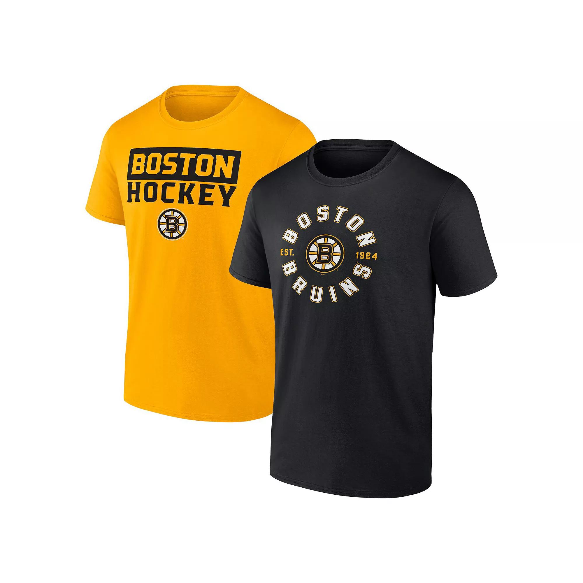 Show off your unwavering loyalty to the Boston Bruins with this Serve T-shirt combo pack. Crafted by Fanatics Branded, this set features stunning Boston Bruins graphics on both pieces of gear. The soft cotton construction of both tees will ensure you stay comfortable no matter what you do.Show off your unwavering loyalty to the Boston Bruins with this Serve T-shirt combo pack. Crafted by Fanatics Branded, this set features stunning Boston Bruins graphics on both pieces of gear. The soft cotton construction of both tees will ensure you stay comfortable no matter what you do.PRODUCT FEATURESImportedShort sleevesMaterial: 100% CottonCrew neckBrand: Fanatics BrandedMachine wash, tumble dry lowScreen print graphicsOfficially licensedSet of two T-shirts Color: Black. Gender: male. Age Group: adult.