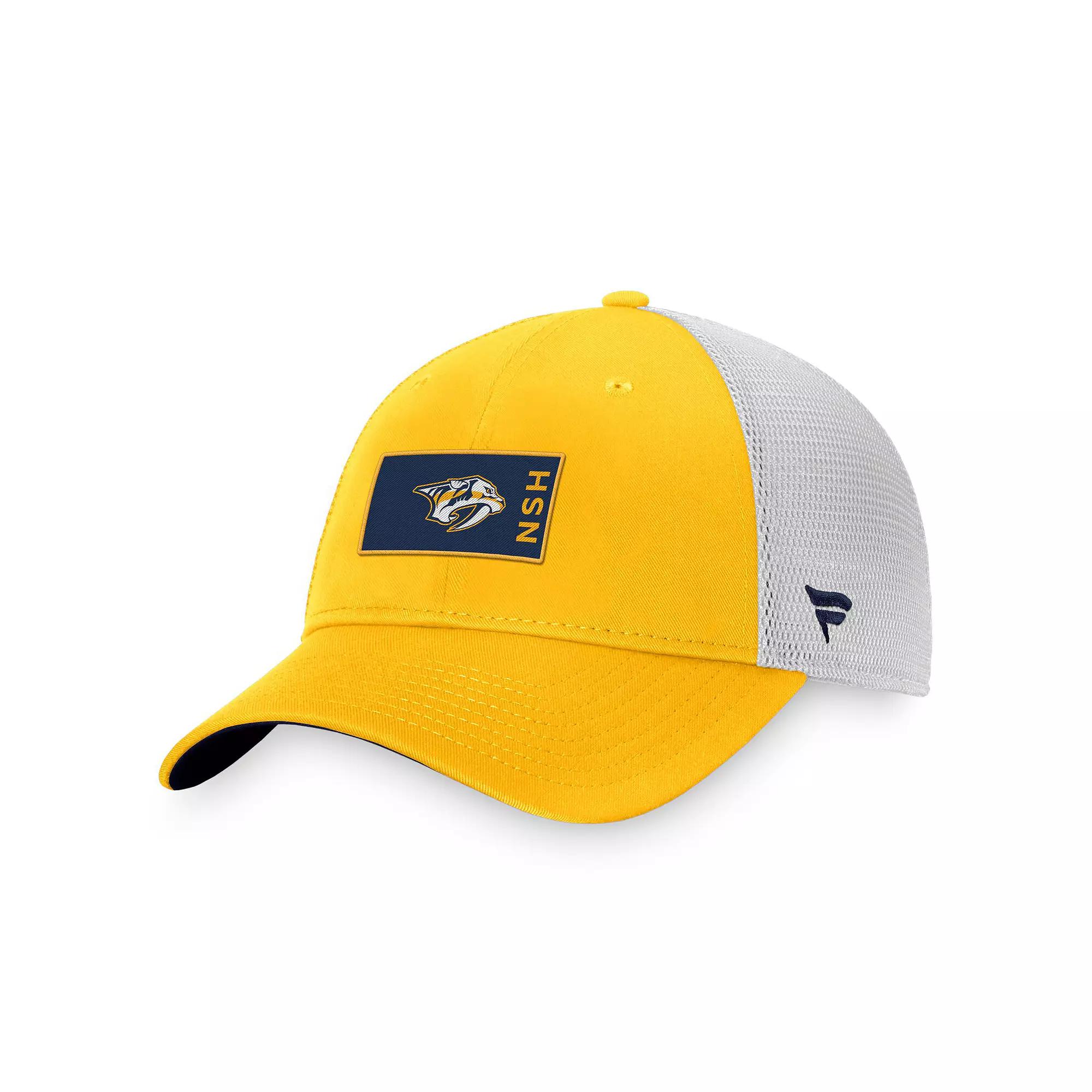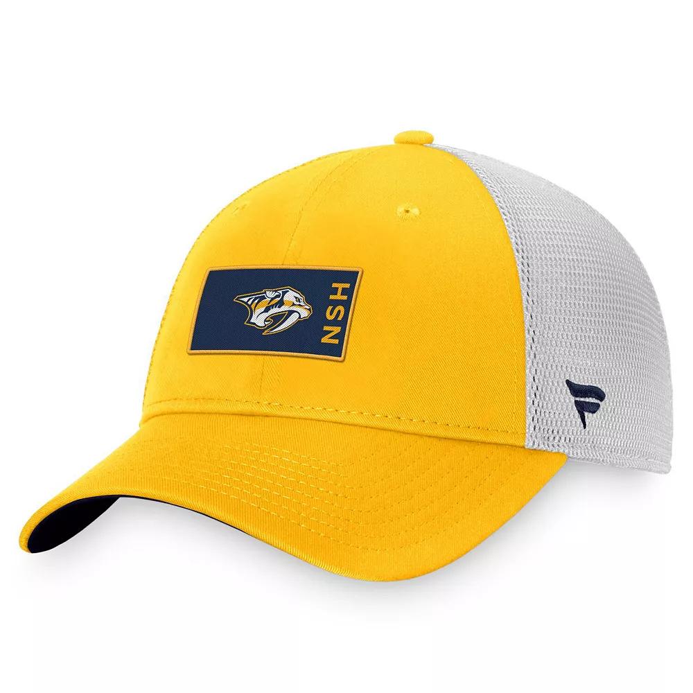 Sport the same gear as your Nashville Predators with this Authentic Pro Rink Trucker hat from Fanatics Branded. Its two-tone design features the official Nashville Predators logo and an easily adjustable snapback closure. Mesh panels also provide a breathable feel for more comfortable wearing.Sport the same gear as your Nashville Predators with this Authentic Pro Rink Trucker hat from Fanatics Branded. Its two-tone design features the official Nashville Predators logo and an easily adjustable snapback closure. Mesh panels also provide a breathable feel for more comfortable wearing.PRODUCT FEATURESBrand: Fanatics BrandedWipe clean with a damp clothContrast-color undervisorSnapbackEmbroidered fabric appliqueTwo solid front panels with eyeletsOfficially licensedImportedOne size fits mostStructured fitMaterial: 97% Polyester/3% Spandex Front Panel; 100% Polyester Back PanelsFour mesh mid and rear panelsCurved billMid Crown Size: One Size. Color: Gold. Gender: male. Age Group: adult.