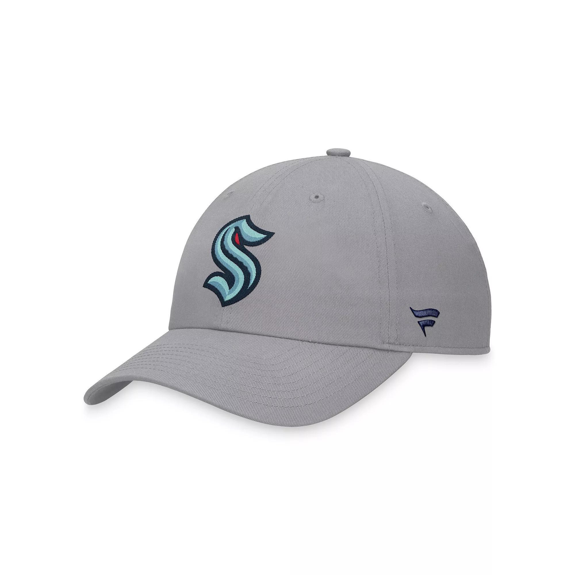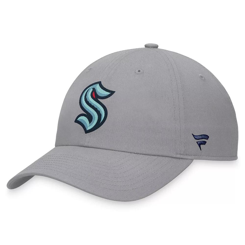 Showcase your unwavering enthusiasm for the Seattle Kraken by snagging this Extra Time adjustable hat from Fanatics Branded. It features a signature Seattle Kraken graphic embroidered on the front panels and a contrasting single-color design. The slide closure makes it easy to secure your perfect fit whenever you reach for this spirited cap.Showcase your unwavering enthusiasm for the Seattle Kraken by snagging this Extra Time adjustable hat from Fanatics Branded. It features a signature Seattle Kraken graphic embroidered on the front panels and a contrasting single-color design. The slide closure makes it easy to secure your perfect fit whenever you reach for this spirited cap.PRODUCT FEATURESOfficially licensedAdjustable fabric strap with slide buckleWipe clean with a damp clothUnstructured relaxed fitSix panels with eyeletsBrand: Fanatics BrandedLow CrownImportedOne size fits mostCurved billMaterial: 100% CottonEmbroidered graphics Size: One Size. Color: Grey. Gender: male. Age Group: adult.