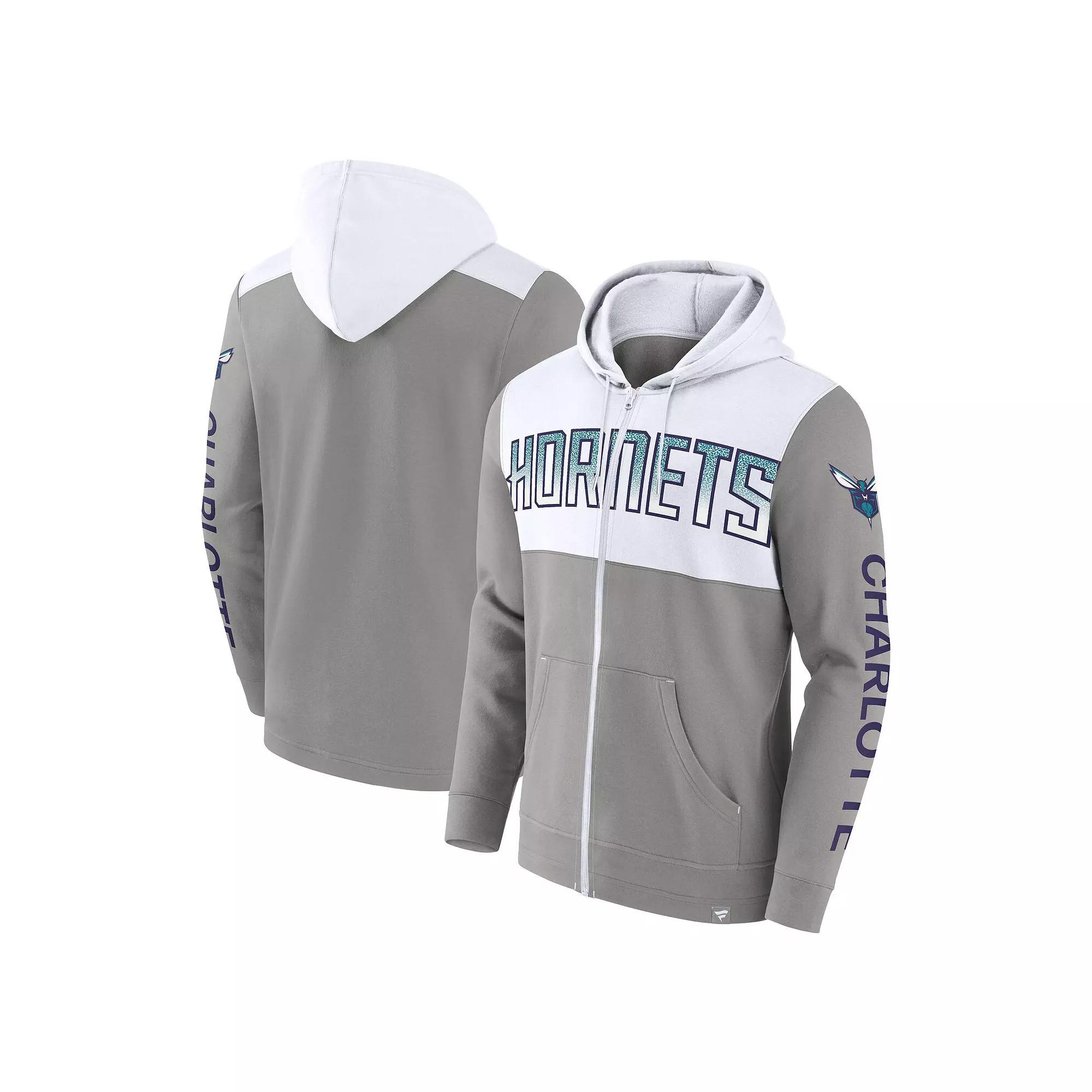 Be ready to cheer on the Charlotte Hornets comfortably when the temperature starts to drop with this Skyhook Color Block full-zip hoodie from Fanatics Branded. The combination of iconic team colors and graphics adds a vibrant layer perfect for game days. Fleece lining and comfy cotton fabric are sure to keep you warm and snug while you cheer the Charlotte Hornets to victory.Be ready to cheer on the Charlotte Hornets comfortably when the temperature starts to drop with this Skyhook Color Block full-zip hoodie from Fanatics Branded. The combination of iconic team colors and graphics adds a vibrant layer perfect for game days. Fleece lining and comfy cotton fabric are sure to keep you warm and snug while you cheer the Charlotte Hornets to victory.Machine wash, tumble dry lowBrand: Fanatics BrandedLong sleeveMaterial: 80% Cotton/20% PolyesterImportedMidweight hoodie suitable for moderate temperaturesTwo front pocketsFull-zipEmbroidered graphicsOfficially licensedFleece linedHood with drawstring Size: 3XL. Color: Grey. Gender: male. Age Group: adult.