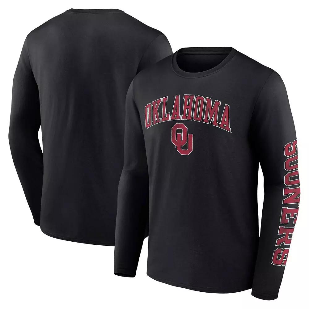 Men's Fanatics Branded Heather Charcoal Oklahoma Sooners Distressed Arch Over Logo Long Sleeve T-Shirt,  Product Image