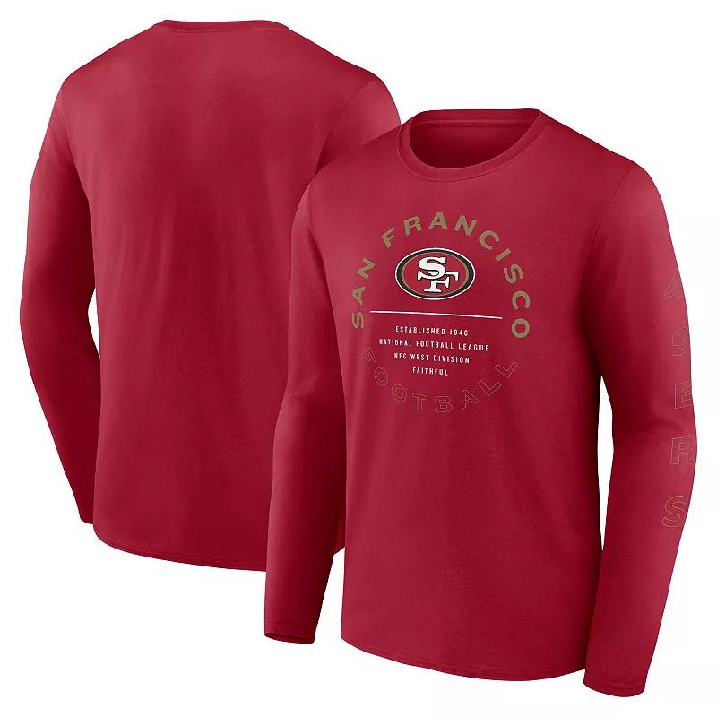 Showcase your San Francisco 49ers pride with this detailed Stat Sheet Long Sleeve T-Shirt from Fanatics. The team logo, founding year, and division are proudly displayed on the front, while the team name runs down the left sleeve for a bold statement of fandom. This tee is a must-have for any diehard fan looking to rep the Niners and their NFL legacy.Showcase your San Francisco 49ers pride with this detailed Stat Sheet Long Sleeve T-Shirt from Fanatics. The team logo, founding year, and division are proudly displayed on the front, while the team name runs down the left sleeve for a bold statement of fandom. This tee is a must-have for any diehard fan looking to rep the Niners and their NFL legacy.PRODUCT FEATURESOfficially licensedCrew neck for all-day comfortImportedMachine wash, tumble dry lowLong sleeveTeam logo, founding year and division printed on the frontMaterial: 100% CottonTeam name screen printed down left sleeveBrand: Fanatics Color: Red. Gender: male. Age Group: adult.