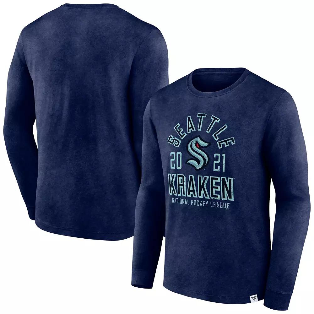 Enjoy a spirited showing of Seattle Kraken pride by grabbing this Keep The Zone T-shirt from Fanatics Branded. It features bold Seattle Kraken graphics printed across the chest including their year of establishment for an unquestionable authenticity. The distressed details provide a vintage look while the long sleeves give this tee just the right amount of coverage.Enjoy a spirited showing of Seattle Kraken pride by grabbing this Keep The Zone T-shirt from Fanatics Branded. It features bold Seattle Kraken graphics printed across the chest including their year of establishment for an unquestionable authenticity. The distressed details provide a vintage look while the long sleeves give this tee just the right amount of coverage.Crew neckWoven clip tagOfficially licensedLong sleeveImportedDistressed screen print graphicsMaterial: 100% CottonMachine wash, tumble dry lowBrand: Fanatics Branded Size: 2XL. Color: Navy. Gender: male. Age Group: adult.