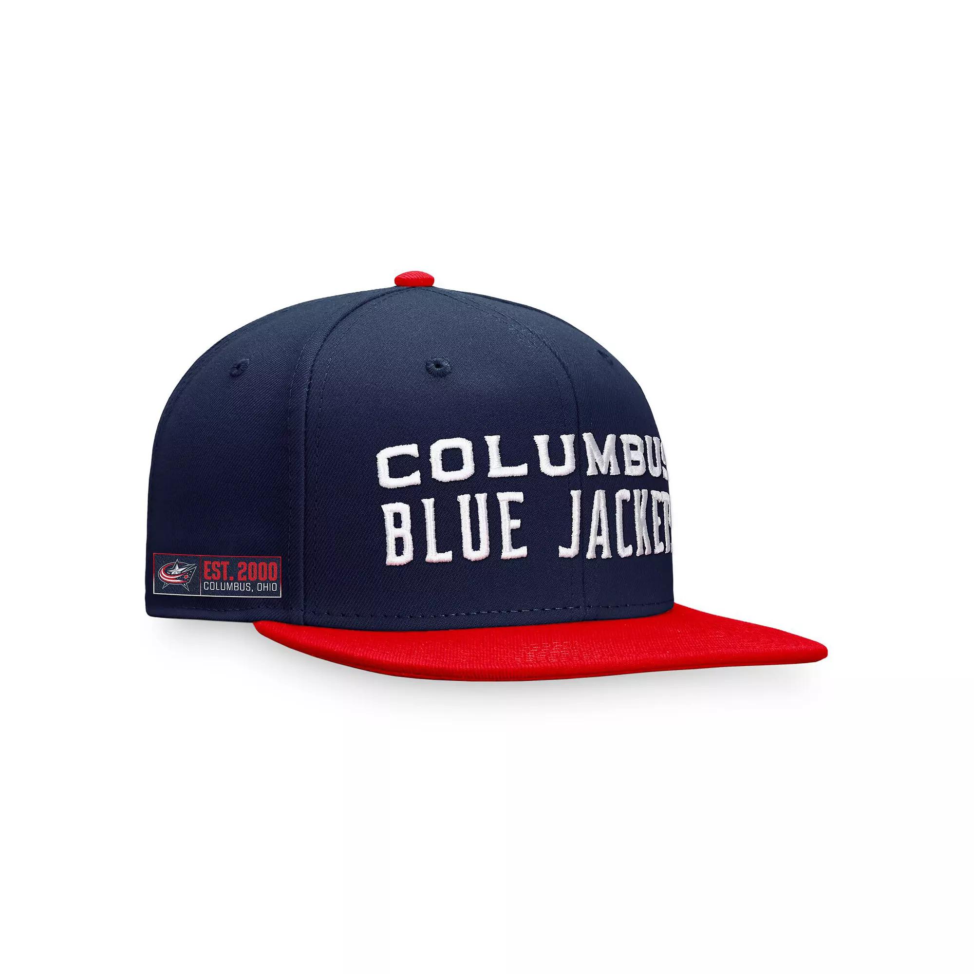 Add a bold finish to any Columbus Blue Jackets look with this Iconic Color Blocked hat. It features bold team graphics across the front and a matching two-tone design. The snapback closure ensures a perfect fit when cheering the Columbus Blue Jackets to a win.Add a bold finish to any Columbus Blue Jackets look with this Iconic Color Blocked hat. It features bold team graphics across the front and a matching two-tone design. The snapback closure ensures a perfect fit when cheering the Columbus Blue Jackets to a win.Structured fitHigh CrownSnapbackOne size fits mostStitched graphic appliqueEmbroidered graphics with raised detailsBrand: Fanatics BrandedFlat billOfficially licensedSix panels with eyeletsImported Color: Navy. Gender: male. Age Group: adult.