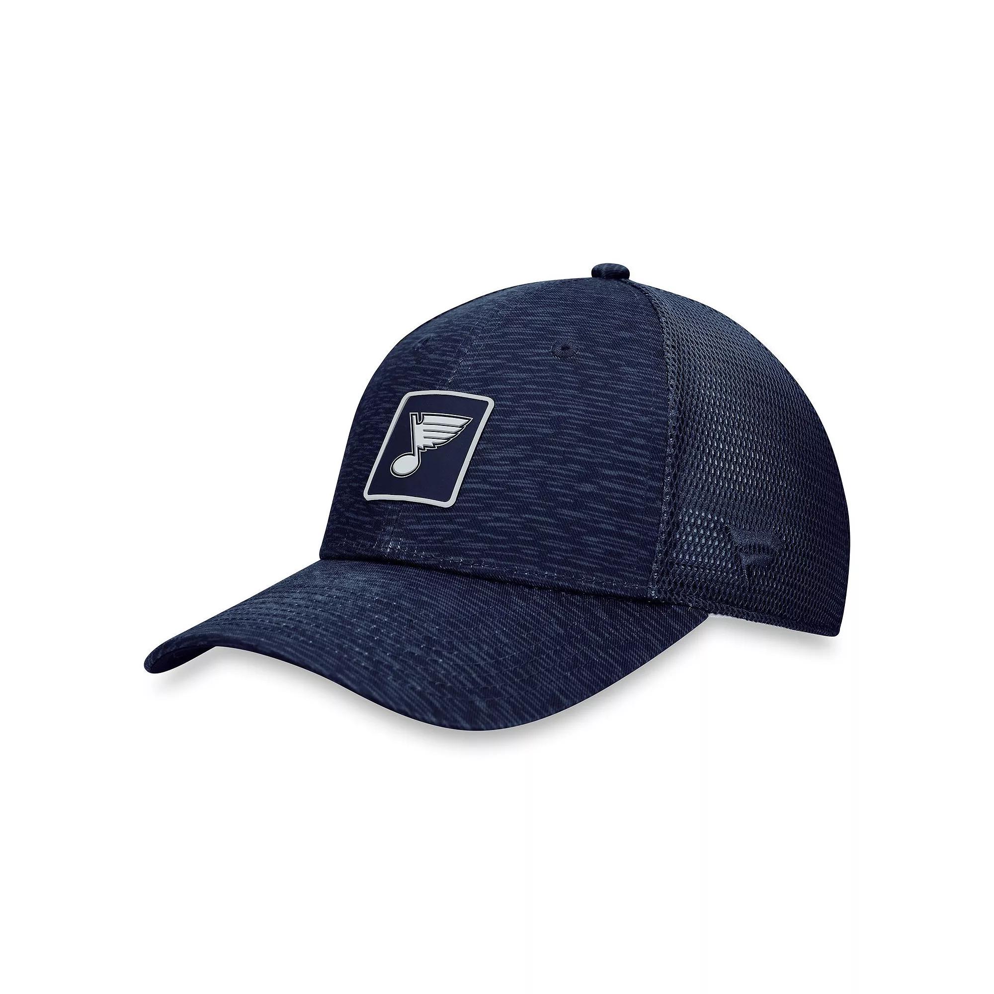 Suit up with the same gear your favorite St. Louis Blues players do with this Authentic Pro Road Trucker Adjustable Hat from Fanatics Branded. This adjustable hat will help you find the perfect fit for your head. The comfortable polyester-elastane blend will make this your favorite St. Louis Blues piece in your collection.Suit up with the same gear your favorite St. Louis Blues players do with this Authentic Pro Road Trucker Adjustable Hat from Fanatics Branded. This adjustable hat will help you find the perfect fit for your head. The comfortable polyester-elastane blend will make this your favorite St. Louis Blues piece in your collection.ImportedOfficially licensedCurved billStructured fitSnap ClosureTwo solid front panels with eyeletsMid CrownMaterial: 97% Polyester/3% ElastaneBrand: Fanatics BrandedOne size fits mostEmbroidered graphics with raised detailsSurface washableFour mesh mid and rear panels Color: Navy. Gender: female. Age Group: adult. Material: COTTON.