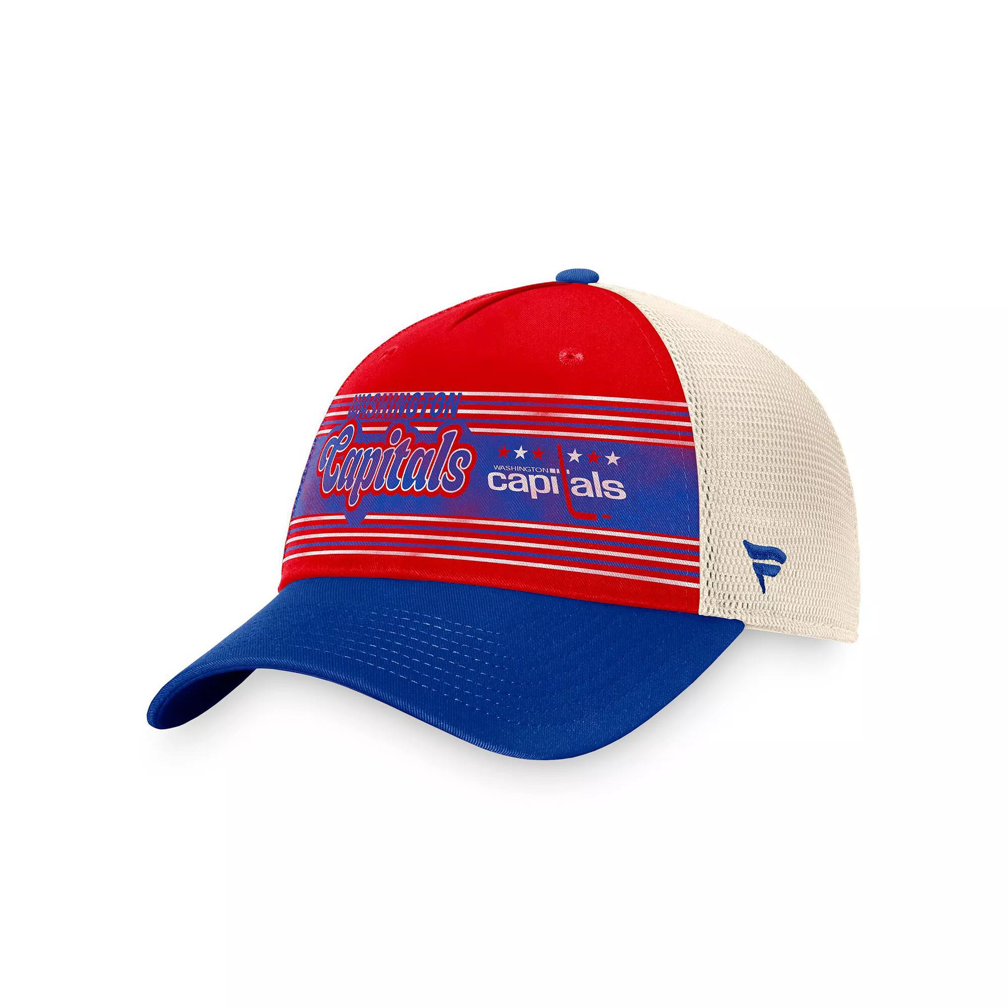 Your Washington Capitals loyalty has stood the test of time. Portray that resilience with this Heritage Vintage Trucker hat from Fanatics Branded. It features distressed Washington Capitals graphics on the front panels for an enduring look. The snap closure makes securing the perfect fit quick and easy.Your Washington Capitals loyalty has stood the test of time. Portray that resilience with this Heritage Vintage Trucker hat from Fanatics Branded. It features distressed Washington Capitals graphics on the front panels for an enduring look. The snap closure makes securing the perfect fit quick and easy.Mesh mid and rear panelsOfficially licensedStructured fitMid CrownCurved billSnap ClosureBrand: Fanatics BrandedImportedWipe clean with a damp clothMaterial: 100% Cotton - Front Panel; 100% Polyester - Mid and Rear PanelsSolid front panel with eyeletsOne size fits mostDistressed screen print graphics Gender: male. Age Group: adult.