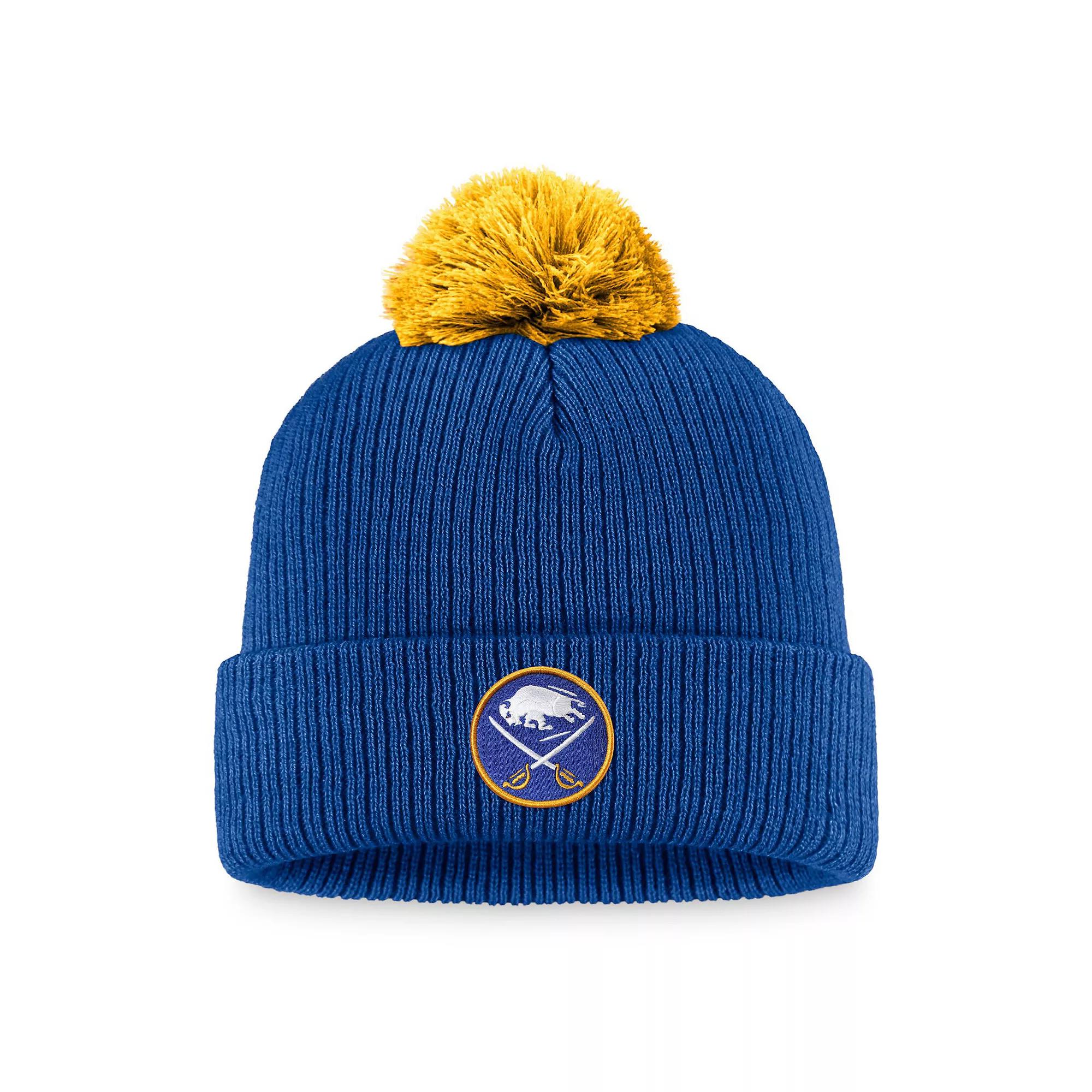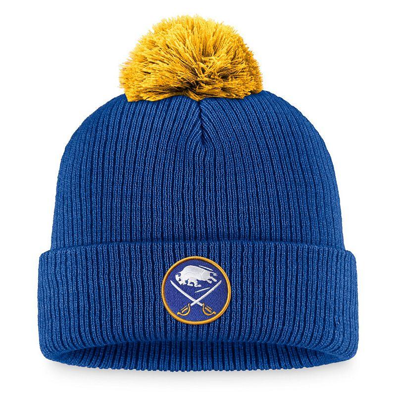 No selection of Buffalo Sabres gear is complete without the right cool weather accessories. Make a spirited addition to your look with this Buffalo Sabres cuffed knit hat from Fanatics Branded. Along with the teams logo embroidered on the cuff, this cap comes complete with a pom on top for an added touch of game day flair.No selection of Buffalo Sabres gear is complete without the right cool weather accessories. Make a spirited addition to your look with this Buffalo Sabres cuffed knit hat from Fanatics Branded. Along with the teams logo embroidered on the cuff, this cap comes complete with a pom on top for an added touch of game day flair.PRODUCT FEATURESBrand: Fanatics BrandedStretch fitImportedOfficially licensedOne size fits mostMaterial: 100% AcrylicSurface washableEmbroidered graphics with raised detailsPom on topCuffed Size: One Size. Color: SAB BLUE. Gender: male. Age Group: adult. Material: COTTON.