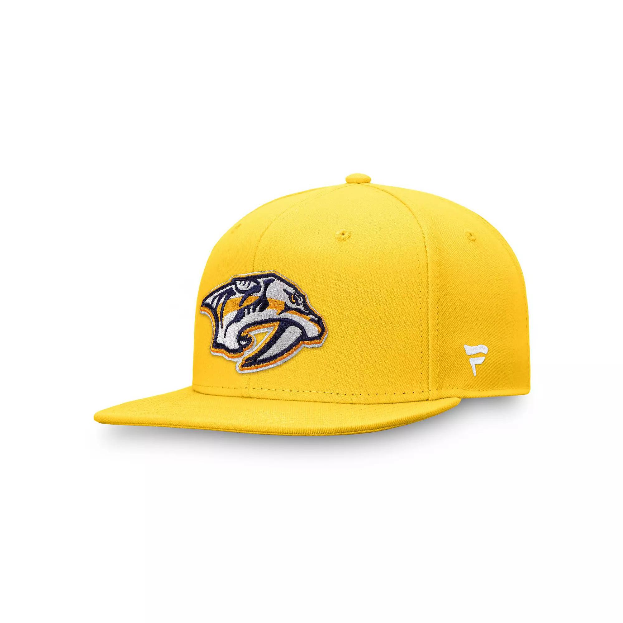 Complete your Nashville Predators look by grabbing this Core Primary Logo Snapback Hat from Fanatics. Its classic snapback design features a high crown and structured fit, offering a timeless look that never goes out of style. The Nashville Predators logo is prominently displayed on the front in raised embroidery, showcasing your team pride with a touch of dimension.Complete your Nashville Predators look by grabbing this Core Primary Logo Snapback Hat from Fanatics. Its classic snapback design features a high crown and structured fit, offering a timeless look that never goes out of style. The Nashville Predators logo is prominently displayed on the front in raised embroidery, showcasing your team pride with a touch of dimension.PRODUCT FEATURESOfficially licensedImportedOne size fits mostFlat bill with ability to curveHigh CrownStructured fitWipe clean with a damp clothSix panels with eyeletsMaterial: 100% PolyesterSnap ClosureTeam logo with raised embroidery on the frontBrand: Fanatics Size: One Size. Color: Pdt Gold. Gender: male. Age Group: adult.