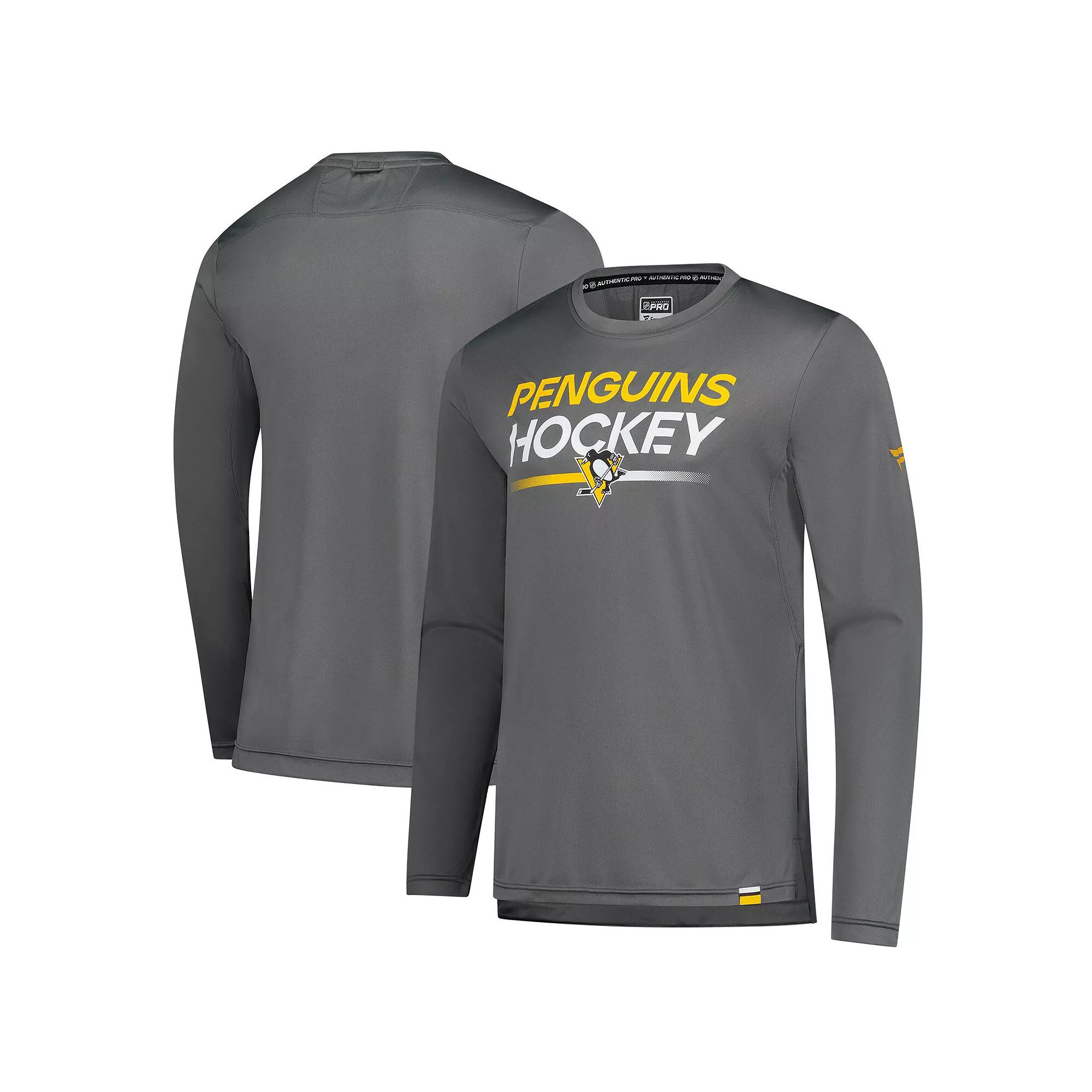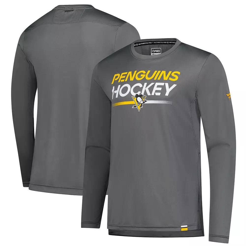 Gear up for hockey season in style with this Pittsburgh Penguins Authentic Pro Tech Long Sleeve T-Shirt from Fanatics. Engineered with breathable mesh underarm and back neck inserts, this Pittsburgh Penguins shirt encourages airflow to help you stay cool and comfortable. Plus, the authentic pro design mirrors the attire of players, coaches and trainers, letting you show off your fandom just like the pros on the ice.Gear up for hockey season in style with this Pittsburgh Penguins Authentic Pro Tech Long Sleeve T-Shirt from Fanatics. Engineered with breathable mesh underarm and back neck inserts, this Pittsburgh Penguins shirt encourages airflow to help you stay cool and comfortable. Plus, the authentic pro design mirrors the attire of players, coaches and trainers, letting you show off your fandom just like the pros on the ice.PRODUCT FEATURESMaterial: 100% Polyester - Body; 92% Polyester/8% Elastane - MeshMachine wash, tumble dry lowOfficially licensedWoven clip tagBrand: FanaticsLocker loop on back of collarHeat-sealed graphics on frontFlatlock stitching creates flat seams that lie smoothly against the skinAuthentic Pro gear mirrors the attire of players, coaches and trainersCrew neckImportedMesh underarm and back neck insertsDroptail hem with side splitsLong sleeve Color: Grey. Gender: male. Age Group: adult.