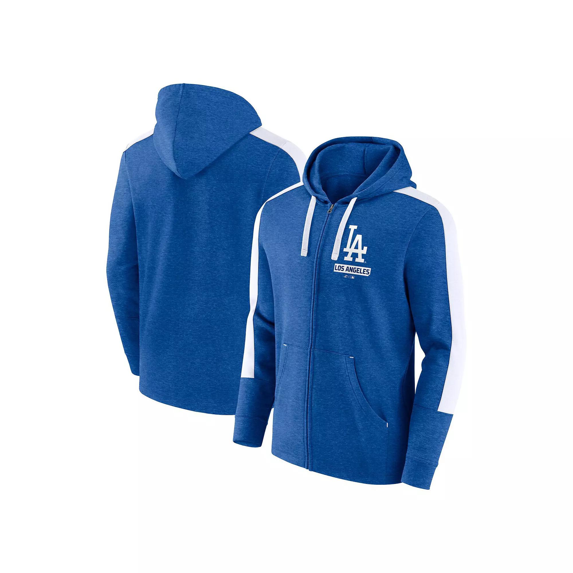 Stay warm and comfortable while repping your Los Angeles Dodgers with this Fanatics Gains Fleece Full-Zip Hoodie. This midweight hoodie features contrast-color insets on the shoulders and sleeves for a sporty, layered look. A fleece lining provides added comfort, while the team graphic and wordmark printed on the left chest allow you to shout out for the Los Angeles Dodgers with pride.Stay warm and comfortable while repping your Los Angeles Dodgers with this Fanatics Gains Fleece Full-Zip Hoodie. This midweight hoodie features contrast-color insets on the shoulders and sleeves for a sporty, layered look. A fleece lining provides added comfort, while the team graphic and wordmark printed on the left chest allow you to shout out for the Los Angeles Dodgers with pride.PRODUCT FEATURESMaterial: 100% PolyesterHoodedOfficially licensedContrast-color insets on shoulders and along sleevesTeam graphic and wordmark printed on the left chestBrand: FanaticsMachine wash, tumble dry lowFleece lining for added comfortFull ZipImportedTwo front pouch pockets for small-item storageLong sleeveMidweight hoodie suitable for moderate temperatures Color: Blue. Gender: male. Age Group: adult. Material: COTTON.