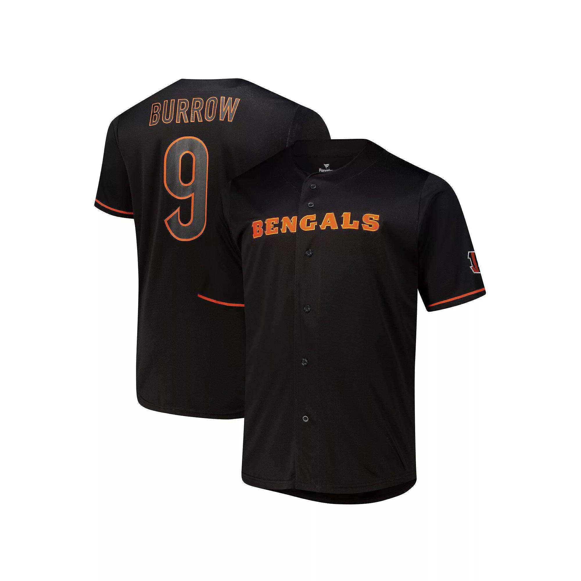 Show off your Cincinnati Bengals pride in this Joe Burrow Baseball Button-Up Shirt from Fanatics. This shirt features a full-button front and rounded hem for freedom of movement and ease of styling. Made from lightweight and breathable polyester, this shirt is ideal for any die-hard Cincinnati Bengals fan looking to rep their favorite player and team in style.Show off your Cincinnati Bengals pride in this Joe Burrow Baseball Button-Up Shirt from Fanatics. This shirt features a full-button front and rounded hem for freedom of movement and ease of styling. Made from lightweight and breathable polyester, this shirt is ideal for any die-hard Cincinnati Bengals fan looking to rep their favorite player and team in style.PRODUCT FEATURESRounded droptail hem for freedom of movement and ease of stylingFront with an embroidered fabric appliqueOfficially licensedImportedFull-button frontMaterial: 100% PolyesterBrand: FanaticsEmbroidered team logo on left sleeveShort sleeveMachine wash, tumble dry lowLast name and number printed on back Size: 4XB. Color: Black. Gender: male. Age Group: adult. Material: Cotton.