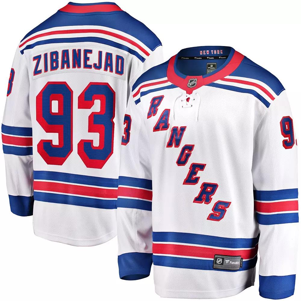Refresh your New York Rangers gear with this Mika Zibanejad Breakaway jersey from Fanatics. Its eye-catching replica design is inspired by the uniform your New York Rangers wear on the ice. This Mika Zibanejad jersey is also crafted with lightweight trims, breathable material and a tailored fit to ensure a comfortable experience on game day.Refresh your New York Rangers gear with this Mika Zibanejad Breakaway jersey from Fanatics. Its eye-catching replica design is inspired by the uniform your New York Rangers wear on the ice. This Mika Zibanejad jersey is also crafted with lightweight trims, breathable material and a tailored fit to ensure a comfortable experience on game day.PRODUCT FEATURESJersey Color Style: AwayFanatics BreakawayOfficially licensedFanShield: Moisture management technology keeps you cool, dry and comfortableMaterial: 100% PolyesterFanFlex: Revolutionary trims that are foldable, lightweight and machine washableMachine wash, tumble dry lowWoven jock tagBack neck tapingCollar fabric insert with heat-sealed NHL ShieldBrand: FanaticsLong sleeveImportedFanTex: Performance midweight fabric that has the optimal drape and range of motionFanFit: A more tailored fit providing improved comfort around the torso and arms Size: 2XL. Color: Ran White. Gender: male. Age Group: adult.