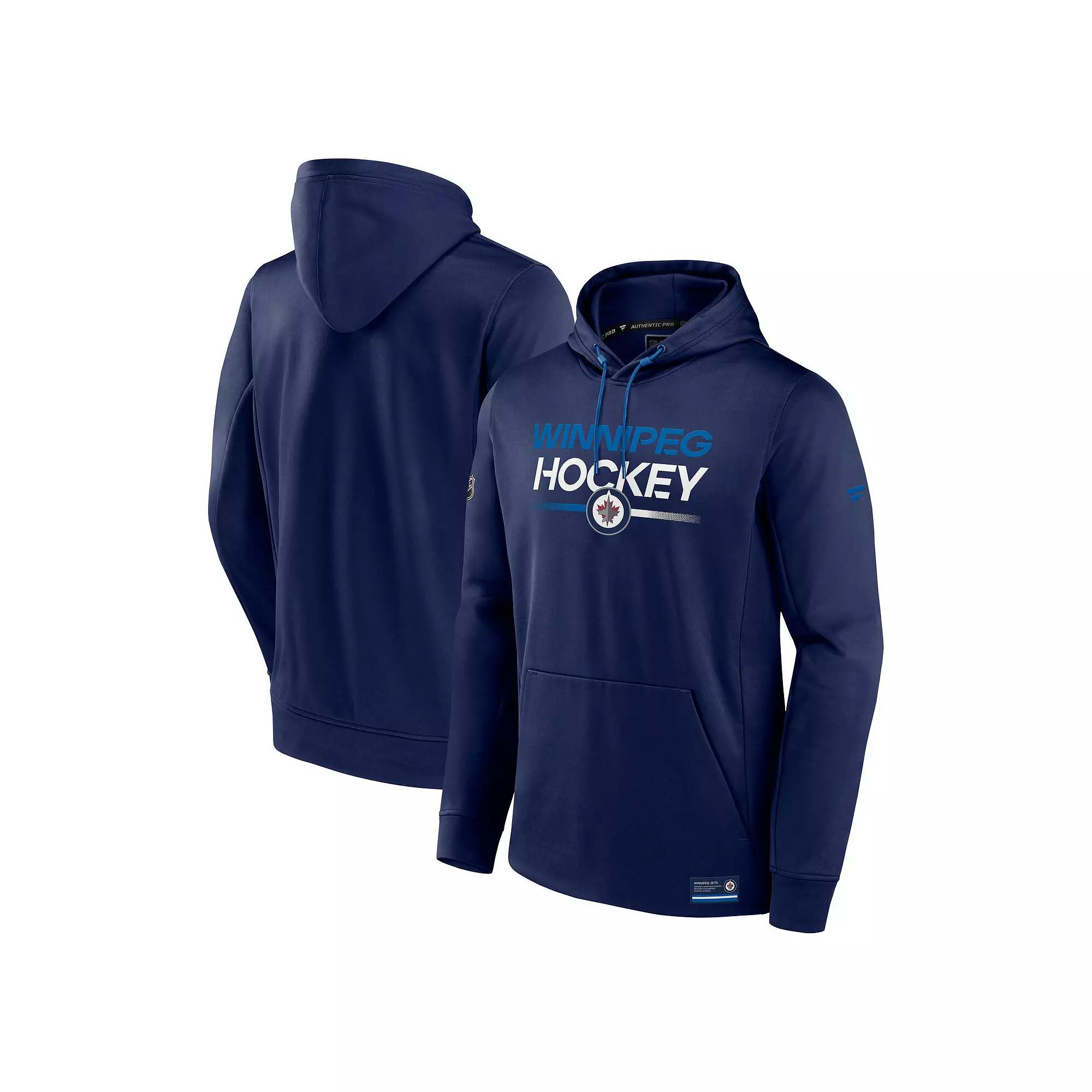 Stay warm while repping your Winnipeg Jets with this Fanatics Fleece Pullover Hoodie. It features a heat-sealed team wordmark with logo underneath, making it clear who you cheer for on the ice. A fleece lining provides an extra layer of warmth, making this a great hoodie for moderate temperatures.Stay warm while repping your Winnipeg Jets with this Fanatics Fleece Pullover Hoodie. It features a heat-sealed team wordmark with logo underneath, making it clear who you cheer for on the ice. A fleece lining provides an extra layer of warmth, making this a great hoodie for moderate temperatures.PRODUCT FEATURESImportedAuthentic Pro collection replicates the gear of players, coaches and trainersBrand: FanaticsFront pouch pocket helps with organization of small itemsLong sleeveHeat-sealed team wordmark with logo under across frontAdjustable drawstring hoodMaterial: 100% Polyester - Body; 92% Polyester/8% Elastane - MeshFleece lining provides an extra layer of warmthMidweight hoodie suitable for moderate temperaturesMachine wash, tumble dry lowSewn-on woven applique at bottom left hemHoodedMesh hood liningPulloverOfficially licensed Color: Jts Navy. Gender: male. Age Group: adult.