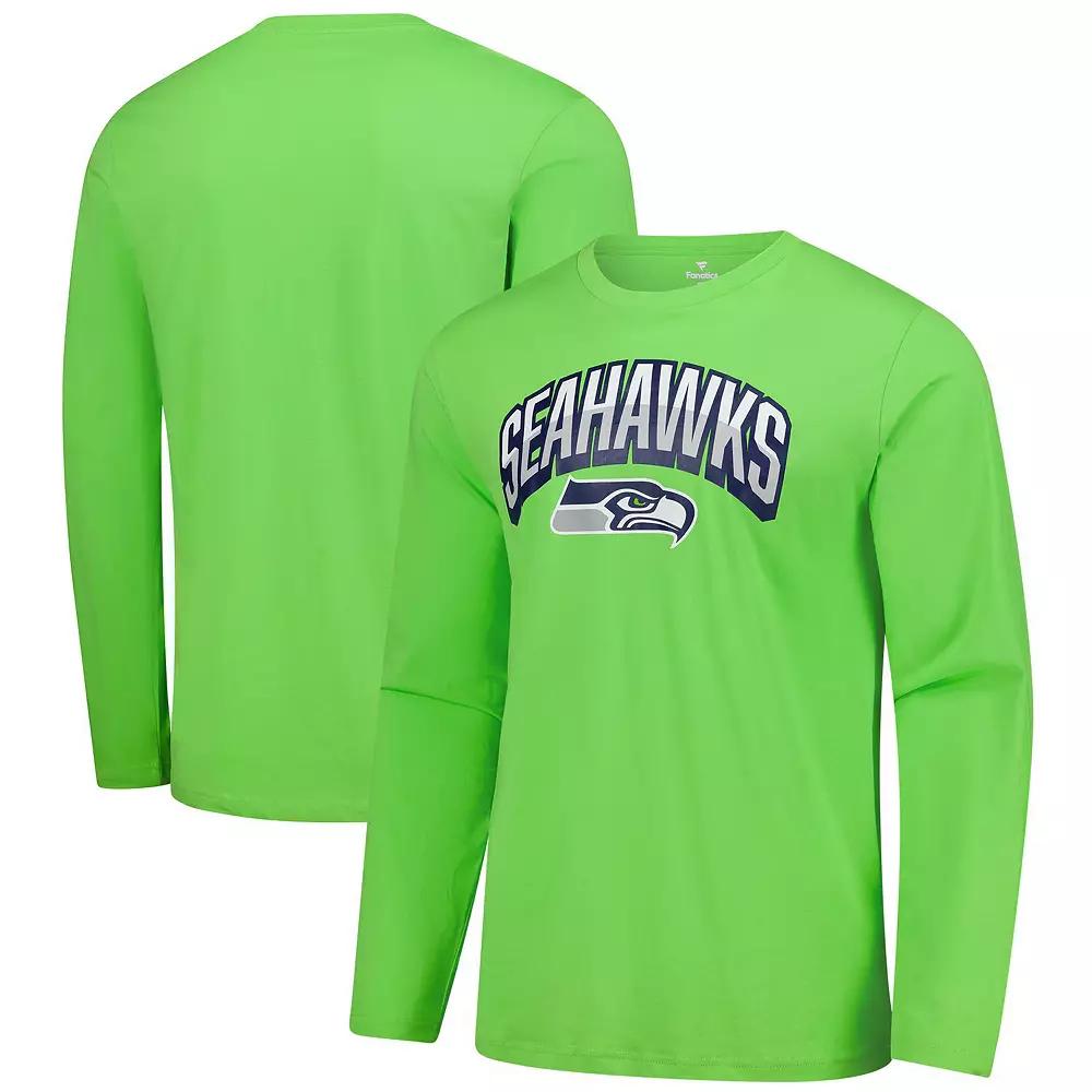 Gear up for game day with this Seattle Seahawks Long Sleeve T-Shirt from Fanatics. This long sleeve tee features bold screen print team graphics at the front, making it clear who youre rooting for on game day. Plus, the 100% combed cotton construction feels soft and comfortable against your skin.Gear up for game day with this Seattle Seahawks Long Sleeve T-Shirt from Fanatics. This long sleeve tee features bold screen print team graphics at the front, making it clear who youre rooting for on game day. Plus, the 100% combed cotton construction feels soft and comfortable against your skin.PRODUCT FEATURESBrand: FanaticsImportedCrew neckLong sleeveMaterial: 100% CottonScreen print team graphics at frontMachine wash, tumble dry lowOfficially licensedCrew neck gives a classic look Size: 3XL. Color: Brt Gr. Gender: male. Age Group: adult.