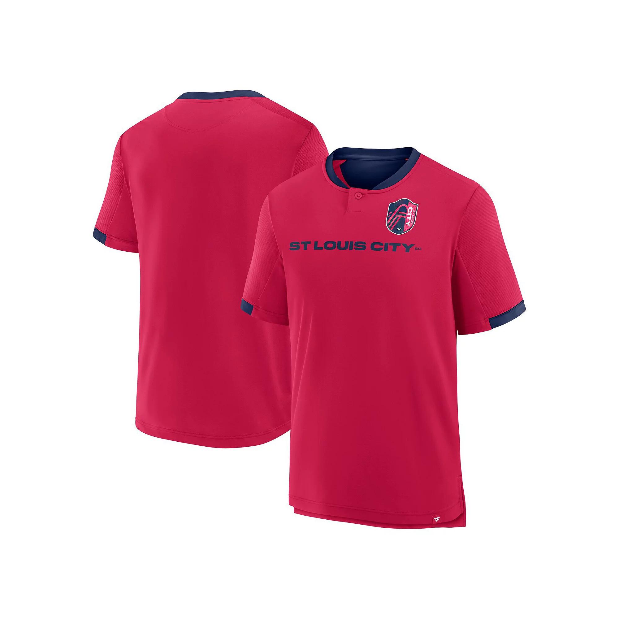 Extend your collection of St. Louis City SC apparel with this Stoppage Time Striker T-Shirt from Fanatics. Its contrasting trim highlights the printed club crest, while the one-button placket adds a stylish detail. Lightweight, breathable blended material helps keep you cool and comfortable in this St. Louis City SC shirt, whether youre cheering from the stands or celebrating a victory.Extend your collection of St. Louis City SC apparel with this Stoppage Time Striker T-Shirt from Fanatics. Its contrasting trim highlights the printed club crest, while the one-button placket adds a stylish detail. Lightweight, breathable blended material helps keep you cool and comfortable in this St. Louis City SC shirt, whether youre cheering from the stands or celebrating a victory.PRODUCT FEATURESCrew neck with one-button placketMachine wash, tumble dry lowBrand: FanaticsImportedScreen print graphicsMaterial: 92% Polyester/8% SpandexOfficially licensedDroptail hem with side splitsShort sleeve Color: Slc Red. Gender: male. Age Group: adult. Material: COTTON.