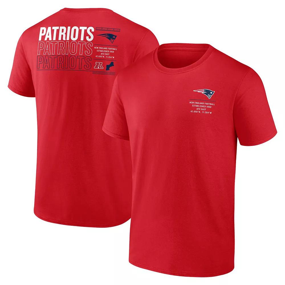 Show your New England Patriots pride with this Fanatics Repeat Stats T-Shirt. It features the team's logo, founding year, division and home coordinates on the front and stacked New England Patriots details printed across the back. With its soft and durable cotton fabric, this classic tee is the perfect combination of style and comfort.Show your New England Patriots pride with this Fanatics Repeat Stats T-Shirt. It features the team's logo, founding year, division and home coordinates on the front and stacked New England Patriots details printed across the back. With its soft and durable cotton fabric, this classic tee is the perfect combination of style and comfort.PRODUCT FEATURESMachine wash, tumble dry lowCrew neckShort sleeveMaterial: 100% Cotton JerseyBrand: FanaticsImportedClassic fit and feelOfficially licensedCozy cotton fabric for added comfortPrinted graphics on left chest and on back highlight team's location and history Size: M. Color: Red. Gender: male. Age Group: adult.