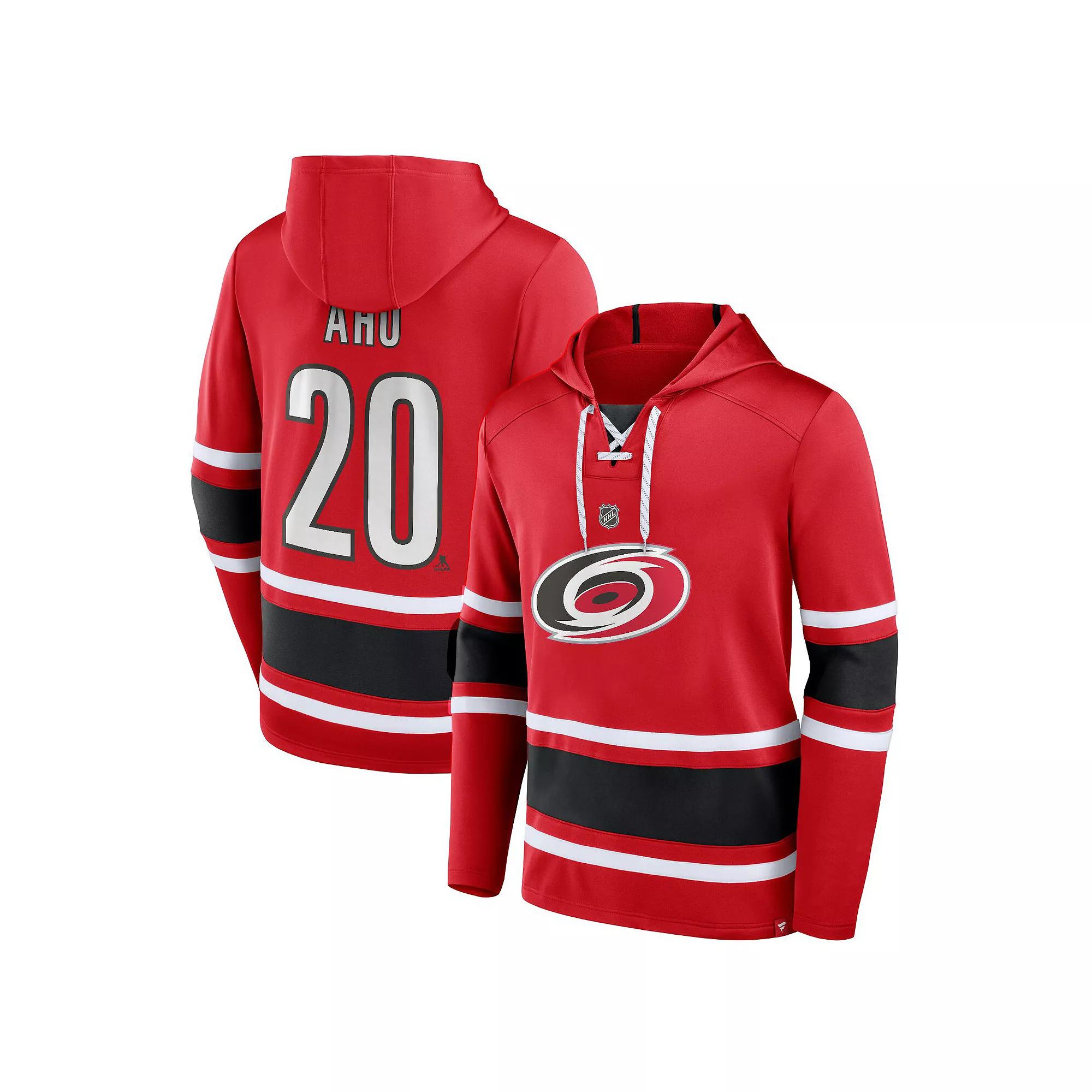 Men's Fanatics Sebastian Aho Red Carolina Hurricanes Name & Number Lace-Up Pullover Hoodie,