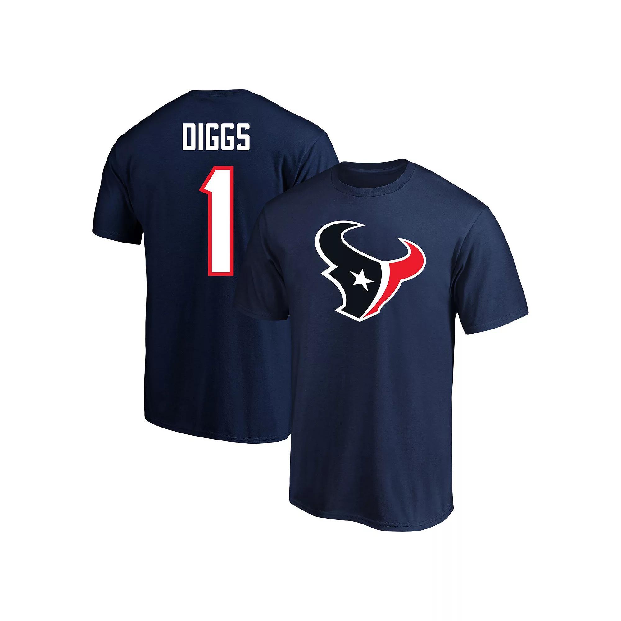 Show your support for one of the most dominant players on the gridiron with this Stefon Diggs Name and Number T-shirt from Fanatics. It features Houston Texans graphics printed on the front and player details displayed across the back. Traditional cotton fabric makes this Stefon Diggs tee an ideal option for game day.Show your support for one of the most dominant players on the gridiron with this Stefon Diggs Name and Number T-shirt from Fanatics. It features Houston Texans graphics printed on the front and player details displayed across the back. Traditional cotton fabric makes this Stefon Diggs tee an ideal option for game day.PRODUCT FEATURESShort sleeveBrand: FanaticsCrew neckMachine wash, tumble dry lowOfficially licensedImportedScreen print graphicsMaterial: 100% Cotton Size: 2XLT. Color: Navy. Gender: male. Age Group: adult.