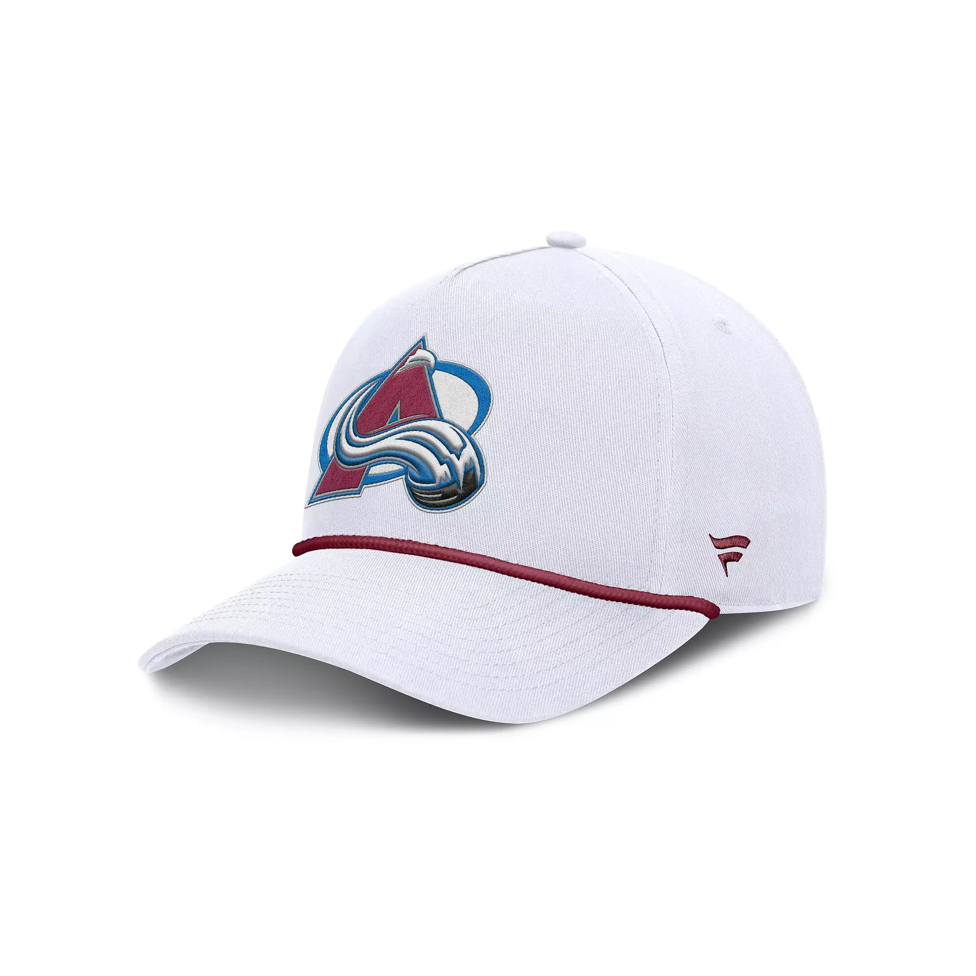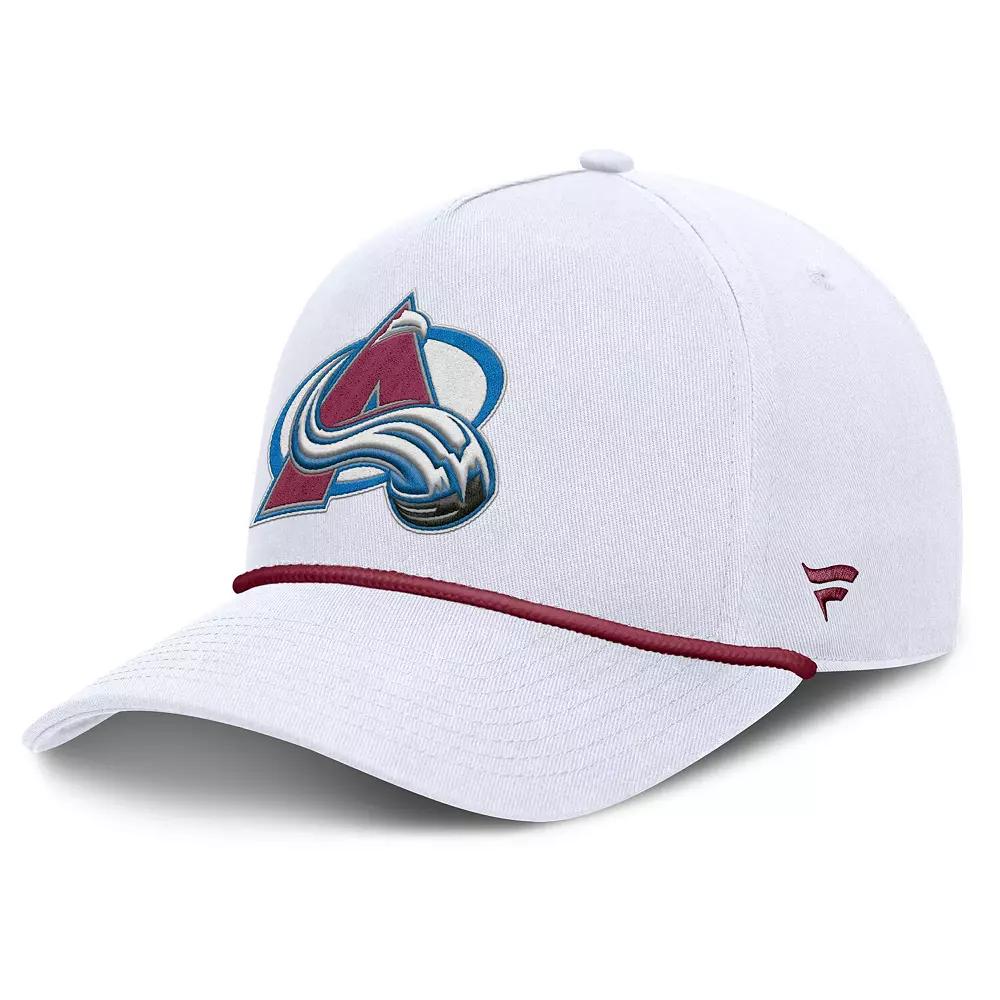 Pair clean style with this Colorado Avalanche Rope A-Frame Adjustable Hat by Fanatics. Its solid design features a braided rope that accentuates the team logo in raised embroidery. A snap closure makes adjusting the fit of this Colorado Avalanche hat quick and simple.Pair clean style with this Colorado Avalanche Rope A-Frame Adjustable Hat by Fanatics. Its solid design features a braided rope that accentuates the team logo in raised embroidery. A snap closure makes adjusting the fit of this Colorado Avalanche hat quick and simple.PRODUCT FEATURESSlightly Curved BillImportedTeam logo on woven clip tagWipe clean with a damp clothOne pinched front panelStructured fitWoven clip tagMaterial: 100% CottonMid CrownMid and rear panels with eyeletsEmbroidered team logo with raised detailsBrand: FanaticsOne size fits mostRope embellishment on visorSnap ClosureOfficially licensed Size: One Size. Color: White. Gender: male. Age Group: adult.