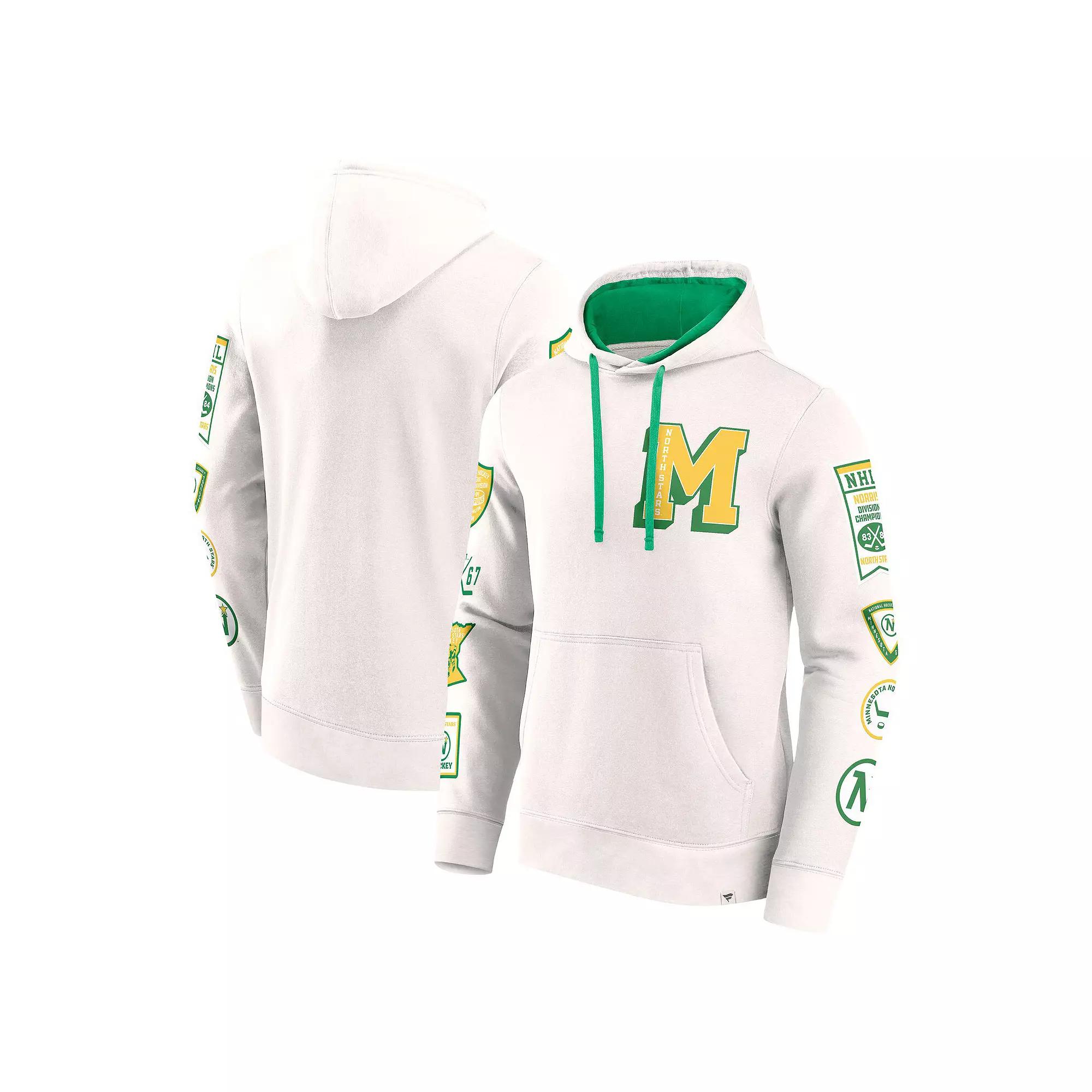 Embrace classic Minnesota North Stars style with this Fanatics Vintage Letterman Pullover Hoodie. The cozy fleece lining and contrast-color hood lining provide an extra layer of warmth, making it perfect for chilly days or casual outings. Heat-sealed team graphics on the chest and sleeves boldly showcase your Minnesota North Stars pride.Embrace classic Minnesota North Stars style with this Fanatics Vintage Letterman Pullover Hoodie. The cozy fleece lining and contrast-color hood lining provide an extra layer of warmth, making it perfect for chilly days or casual outings. Heat-sealed team graphics on the chest and sleeves boldly showcase your Minnesota North Stars pride.PRODUCT FEATURESOfficially licensedMidweight hoodie suitable for moderate temperaturesMachine wash, tumble dry lowHeat-sealed team graphics at left chest and down both sleevesPulloverFleece lining provides added comfortImportedHoodedLong sleeveBrand: FanaticsMaterial: 60% Cotton/40% PolyesterFront pouch pocketContrast-color hood lining Color: Nhl White. Gender: male. Age Group: adult.
