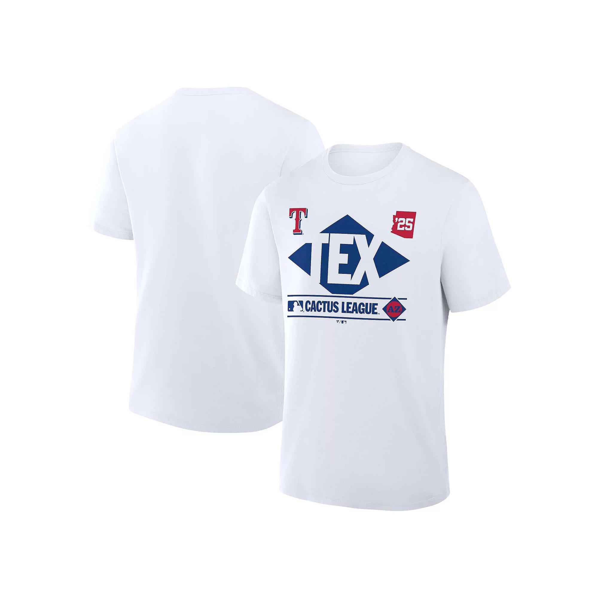 Demonstrate your excitement for Texas Rangers pre-season baseball with this 2025 Spring Training Cactus League True Icon T-Shirt by Fanatics. Its commemorative design features the team logo and Spring Training league details printed on the front. The soft cotton fabric delivers a comfortable fit, making this Texas Rangers tee ideal for everyday wear.Demonstrate your excitement for Texas Rangers pre-season baseball with this 2025 Spring Training Cactus League True Icon T-Shirt by Fanatics. Its commemorative design features the team logo and Spring Training league details printed on the front. The soft cotton fabric delivers a comfortable fit, making this Texas Rangers tee ideal for everyday wear.PRODUCT FEATURESTeam logo and initials screen printed above Spring Training leagueClassic Fit: Not too loose or tight across the chest, shoulders and waist.Machine wash, tumble dry lowCrew neckOfficially licensedImportedMaterial: 100% CottonShort sleeveBrand: FanaticsJersey fabric has a lightweight feel (150gsm) Size: 2XL. Color: White. Gender: male. Age Group: adult.