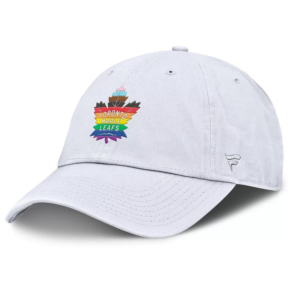 Rock your Toronto Maple Leafs pride with this stylish Pride Adjustable Hat from Fanatics. This hat boasts high-quality embroidered graphics and a woven clip tag, giving you a stylish way to show off your Toronto Maple Leafs pride. The adjustable fabric strap with a snap buckle closure ensures a comfortable fit for all-day wear.Rock your Toronto Maple Leafs pride with this stylish Pride Adjustable Hat from Fanatics. This hat boasts high-quality embroidered graphics and a woven clip tag, giving you a stylish way to show off your Toronto Maple Leafs pride. The adjustable fabric strap with a snap buckle closure ensures a comfortable fit for all-day wear.PRODUCT FEATURESOfficially licensedMaterial: 100% CottonEmbroidered graphicsWoven clip tagUnstructured relaxed fitOne size fits mostBrand: FanaticsImportedSix panels with eyeletsCurved billAdjustable fabric strap with snap buckleLiquid chrome NHL sheild on backWipe clean with a damp clothLow Crown Size: One Size. Color: Mpl White. Gender: male. Age Group: adult.