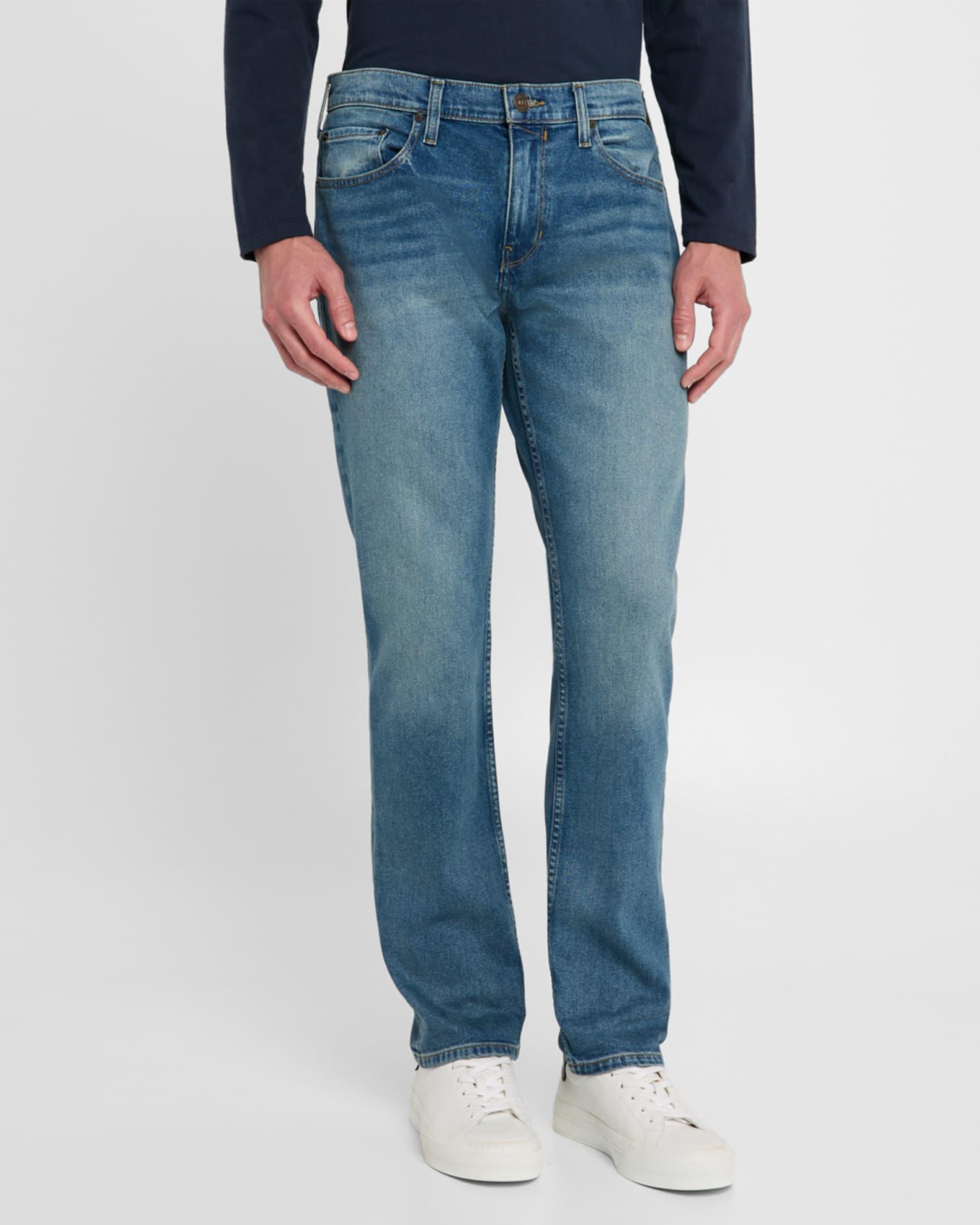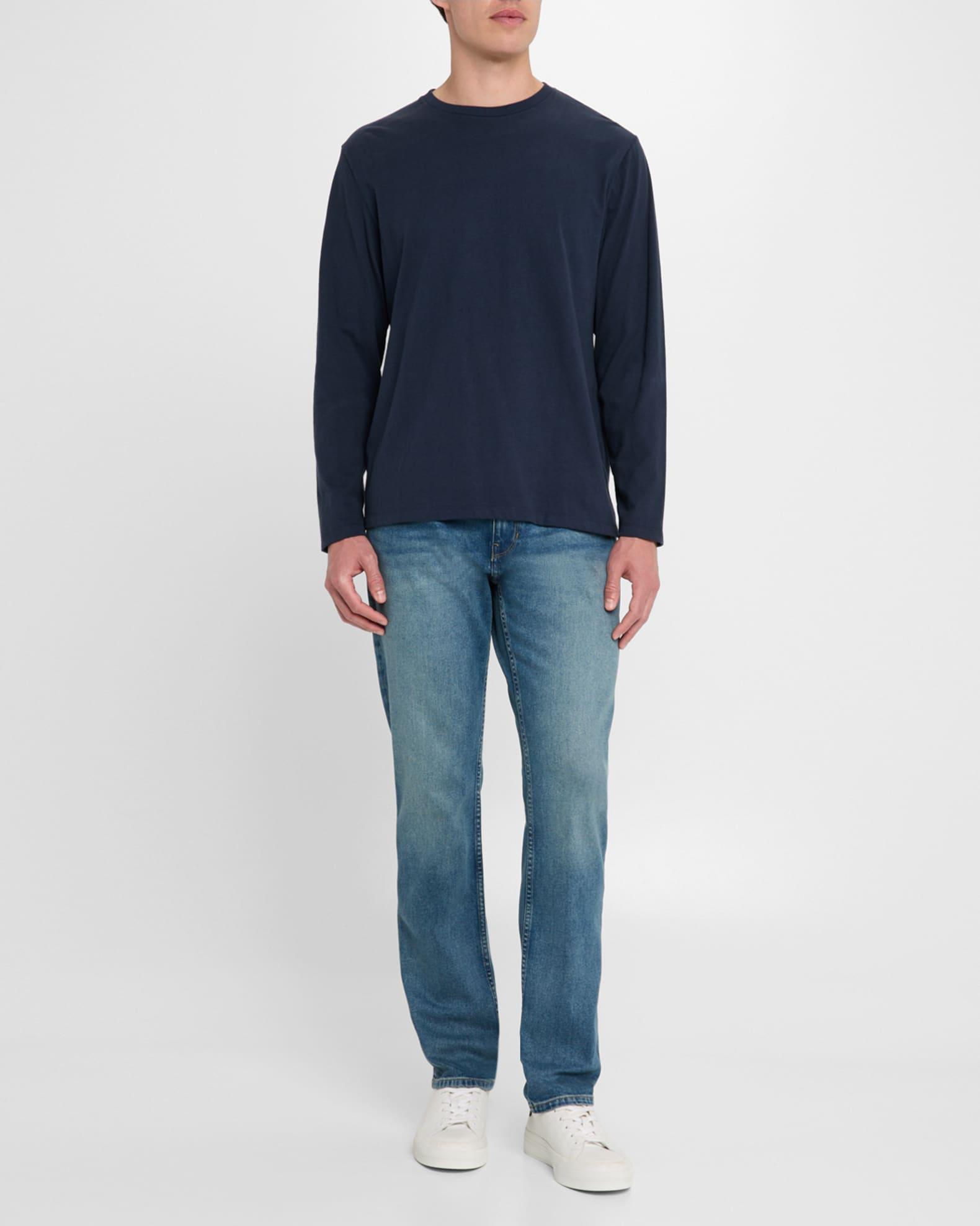 PAIGE "Federal" jeans crafted from signature Heritage denim in a medium/dark wash with subtle whiskering Regular rise Five-pocket style Slim fit through straight legs Button/zip closure; belt loops Cotton/elastane Machine wash cold, line dry Made in Mexico