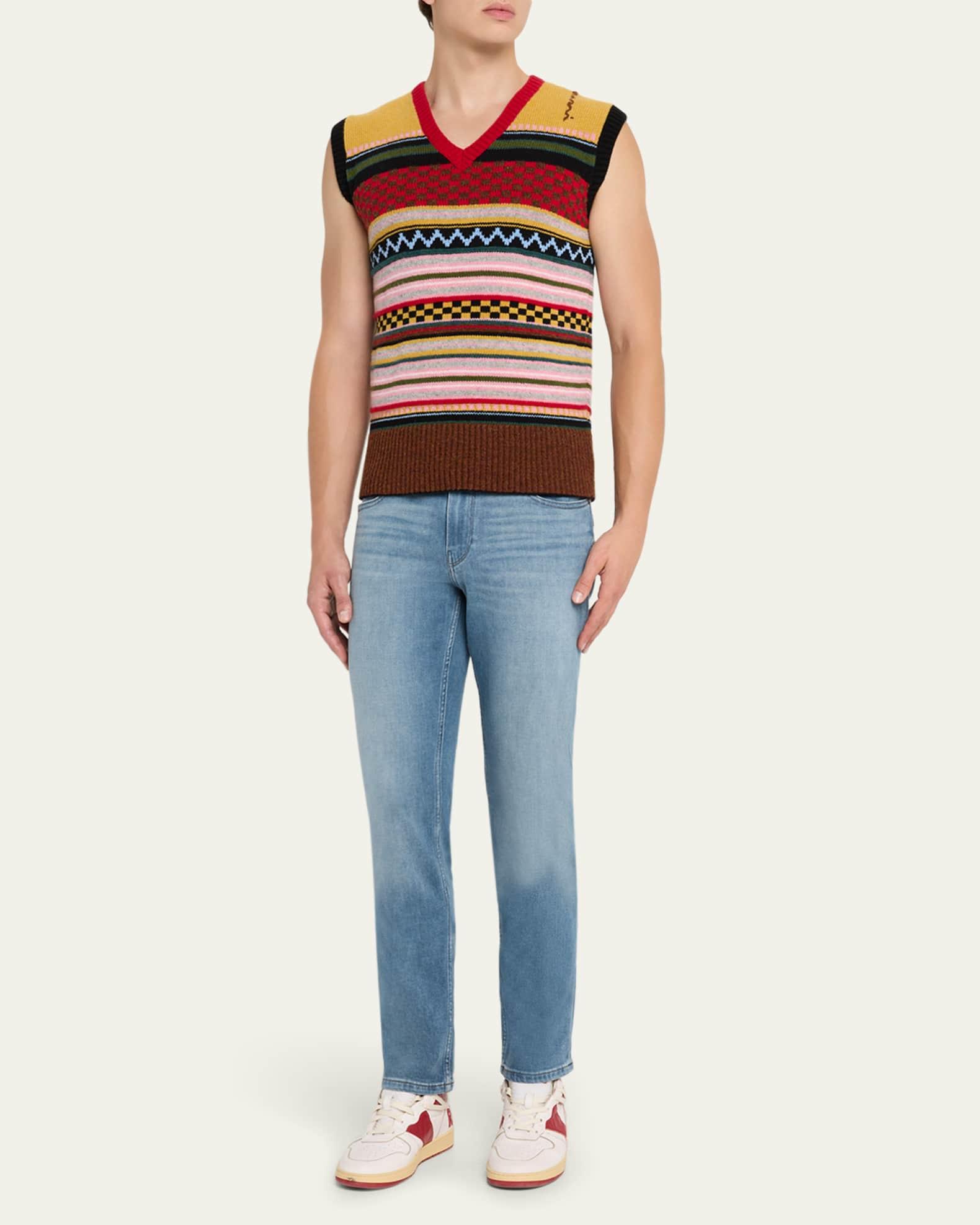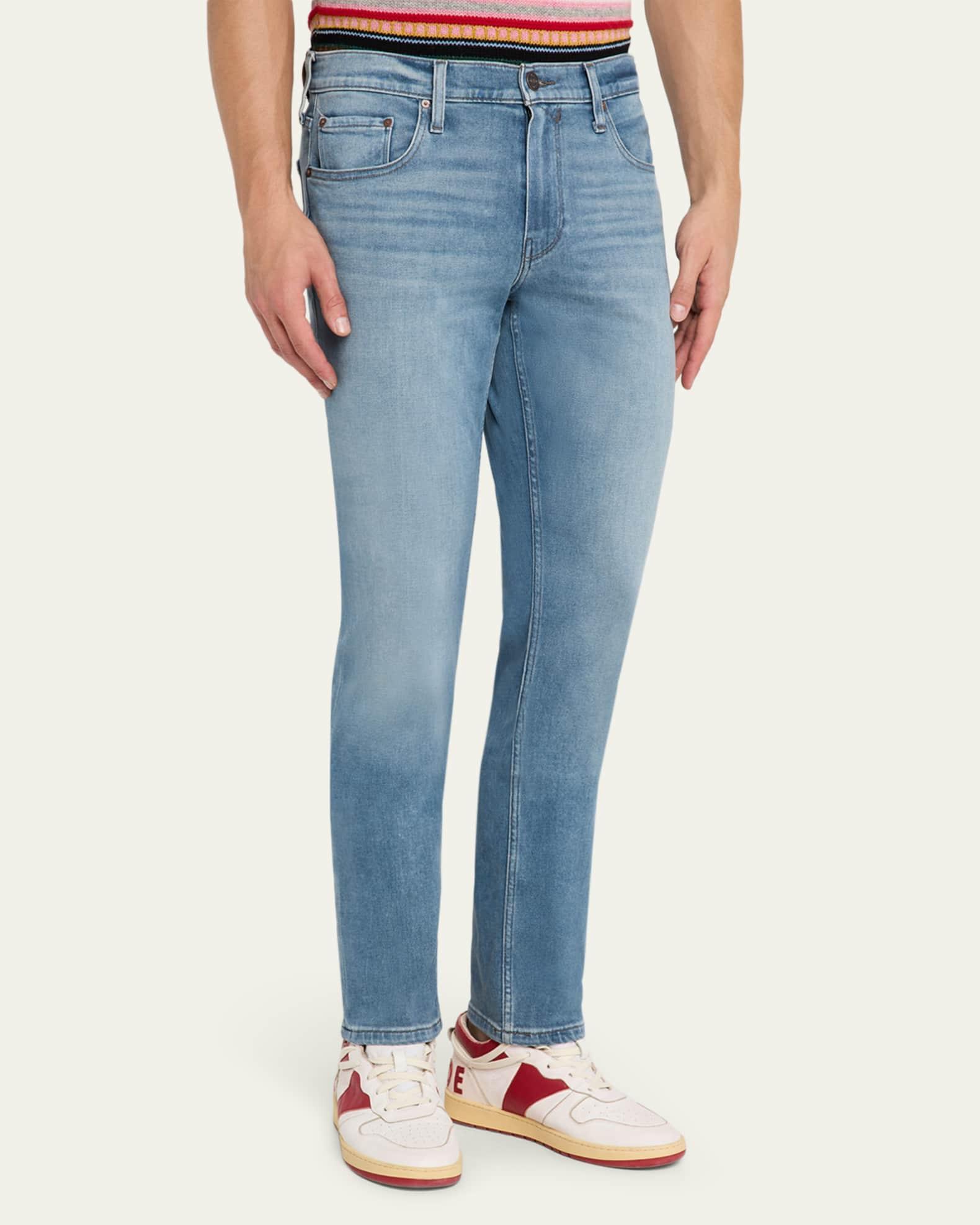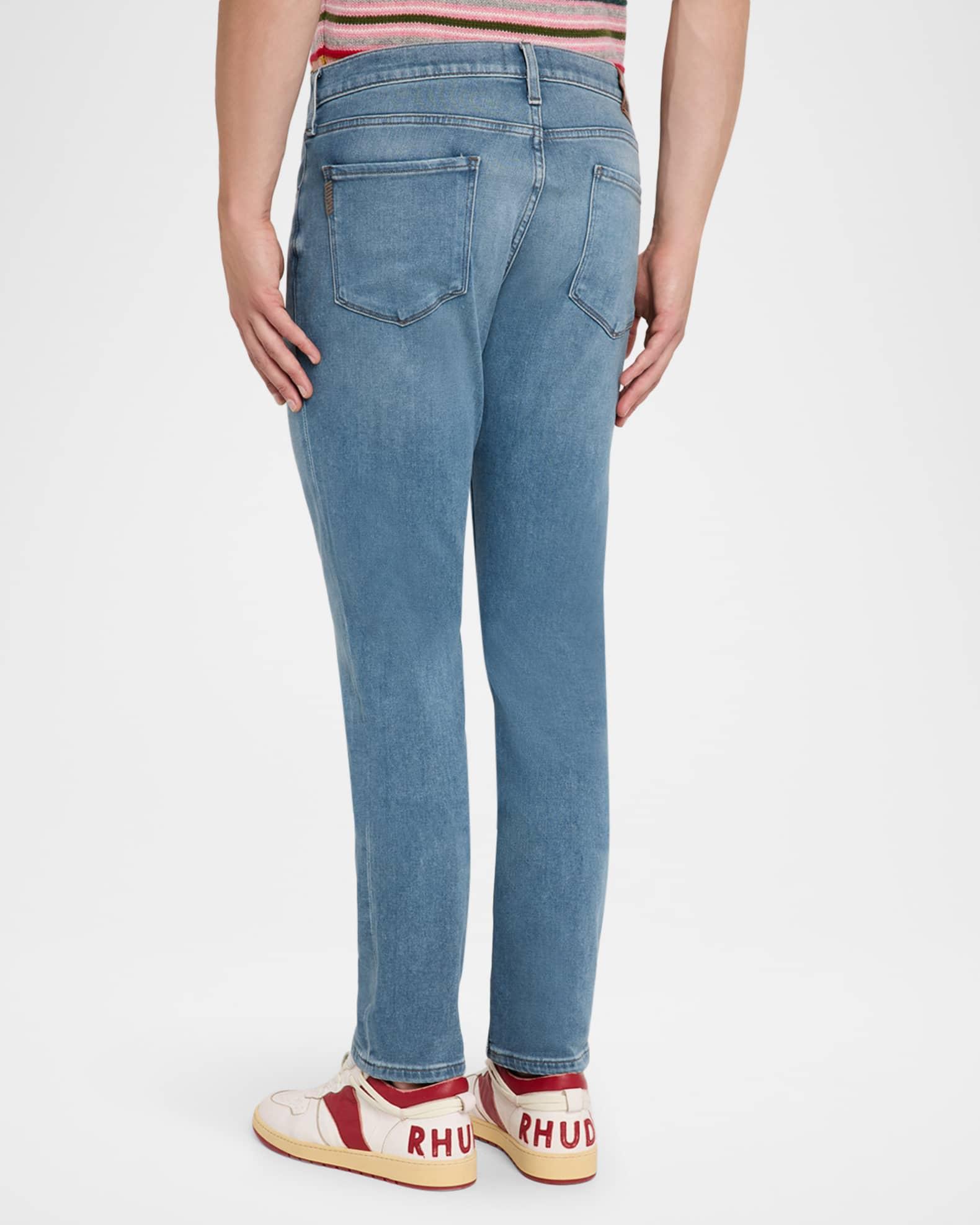 PAIGE "Federal" straight-leg jeans in light-wash denim Regular rise Five-pocket style Slim fit Button/zip fly; belt loops Cotton/polyester/spandex Machine wash cold, inside out Made in Mexico