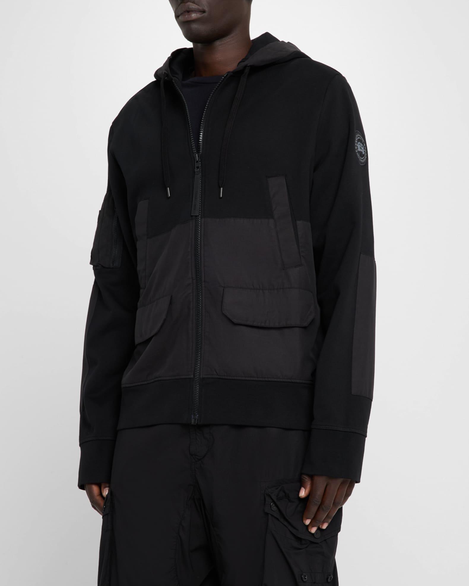 Canada Goose "Ferris" hoodie finished with functional patch pockets and durable elbow patches Hooded drawstring neckline Full-zip front Two angled hand pockets Two flap pockets with hidden snap closure Long sleeves Rib-knit cuffs and hem One zip sleeve patch pocket Relaxed fit Organic cotton Dry clean, machine wash cold, line dry Made in Portugal