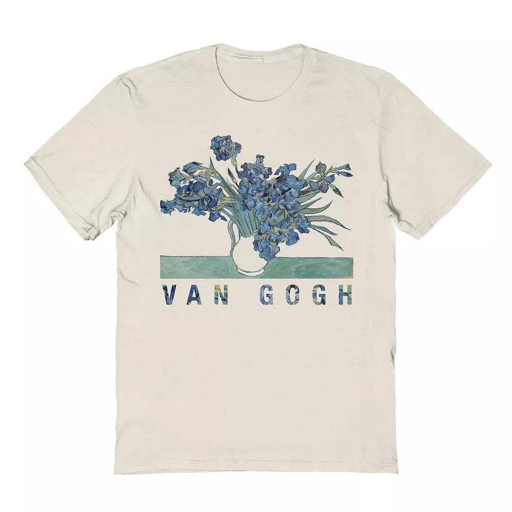 Men's Fine Art - Blue Flowers Graphic Tee, Size: Medium, Beige Khaki