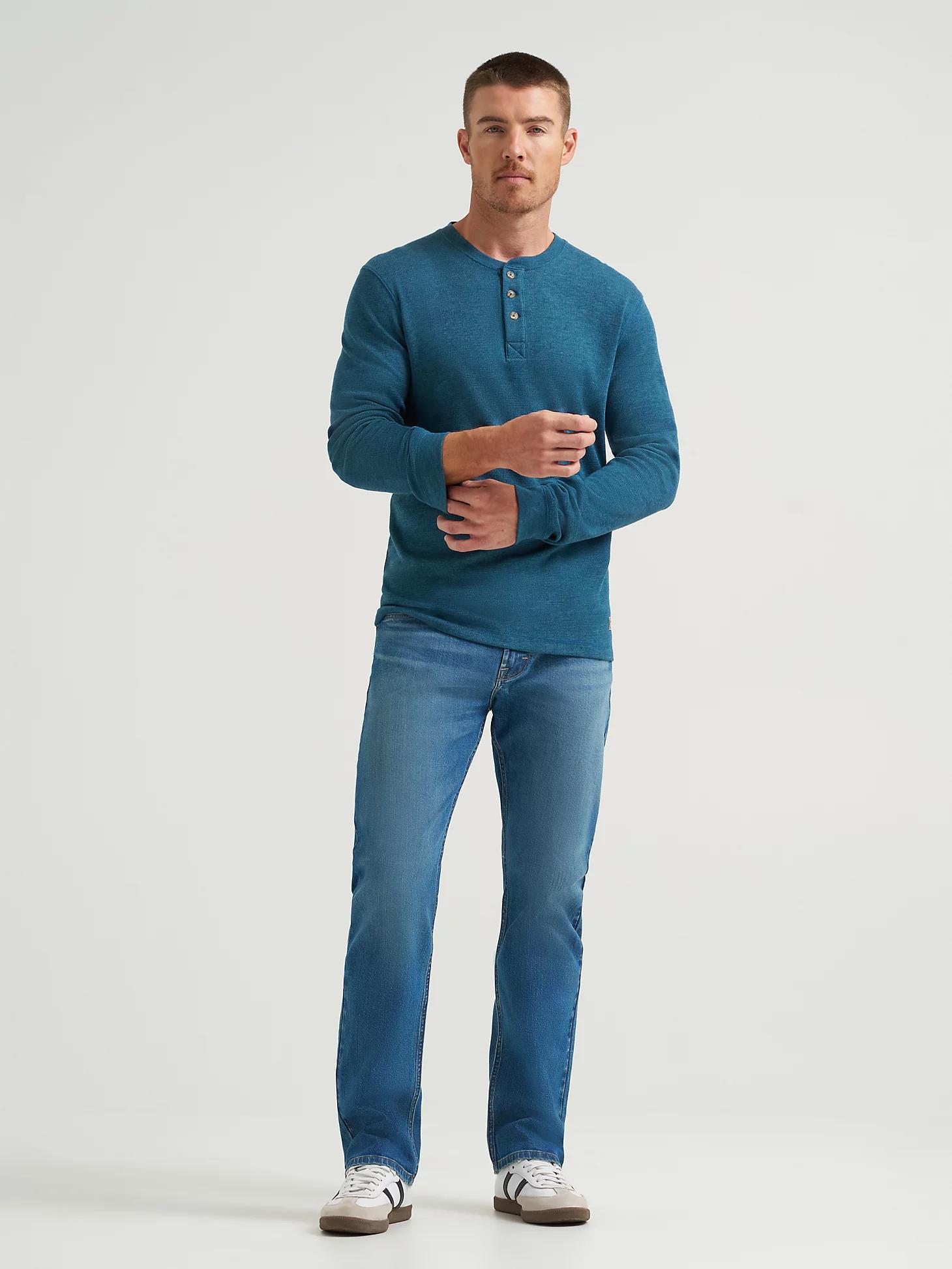 When cooler days finally arrive, a classic henley-style crewneck can do no wrong. Our Wrangler® Men's Five Star Premium Waffle Henley is made of a soft cotton blend for lightweight warmth and comfort that lasts. It features a classic three-button placket and a waffled build that looks great on its own or layered under the outerwear of your choice.