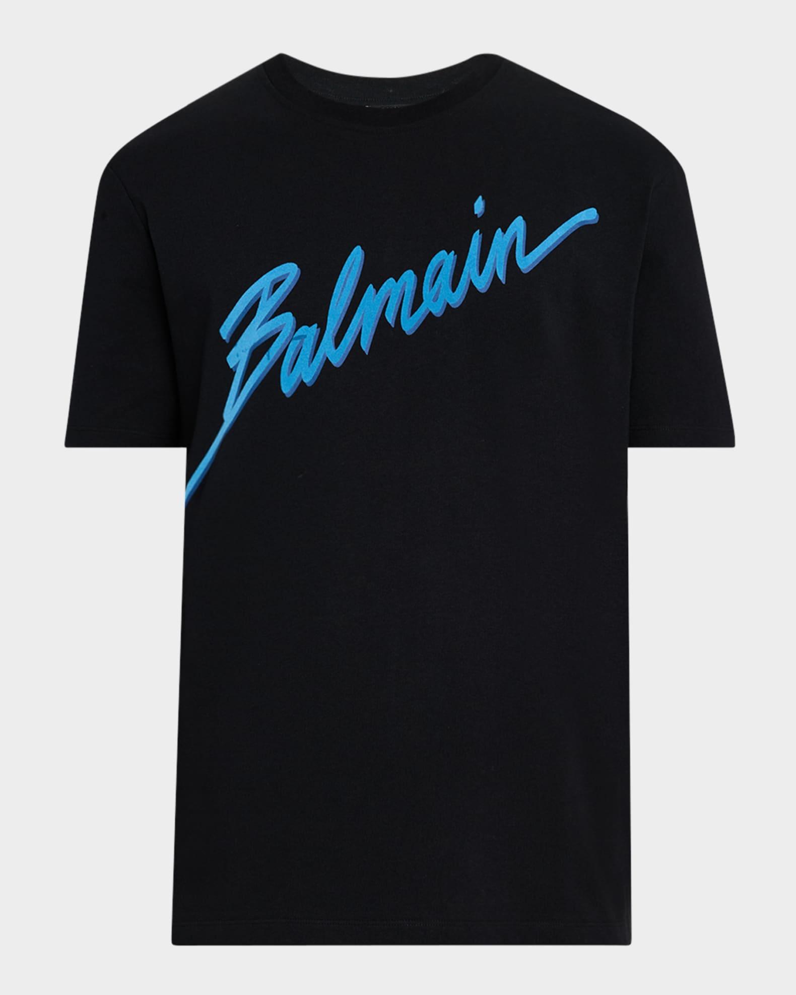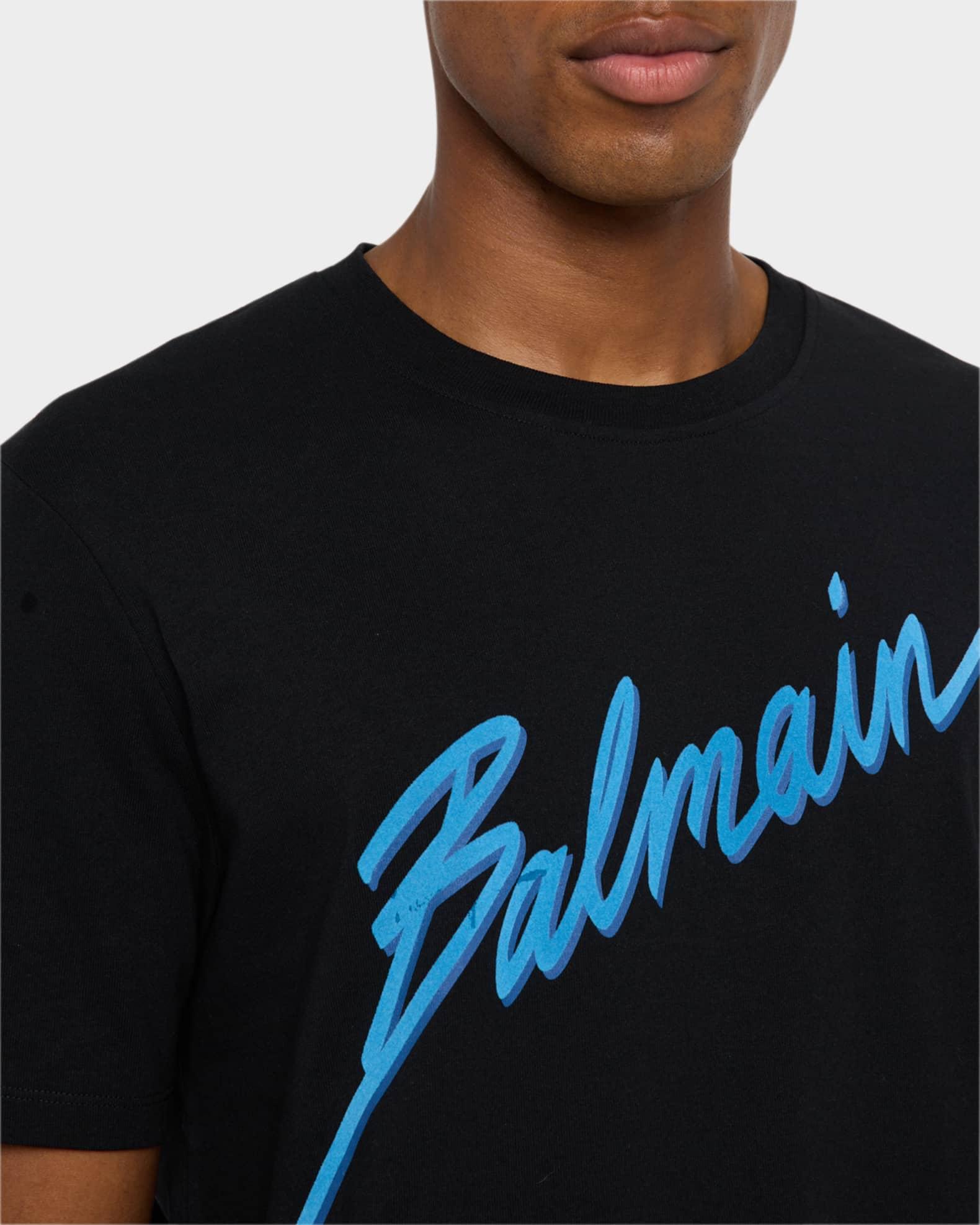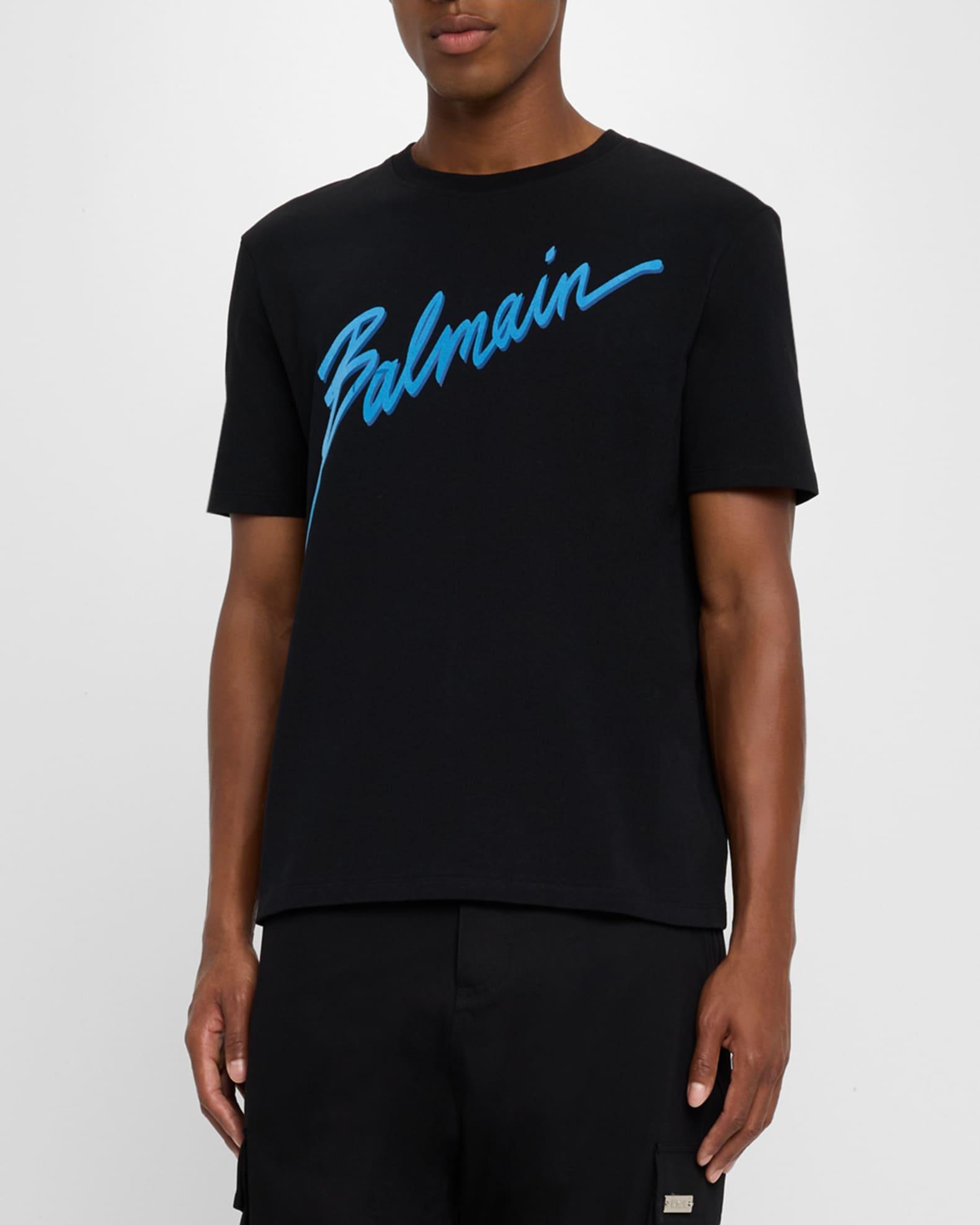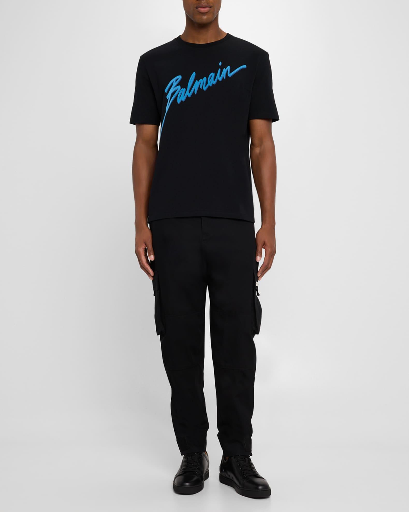 Balmain Tshirt boasting a neoneffect flocked logo across front Crew neckline Short sleeves Regular fit Pullover style Cotton Made in Portugal