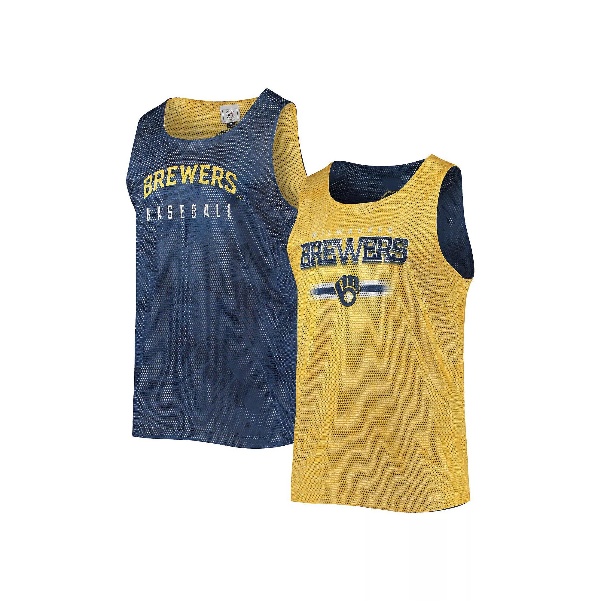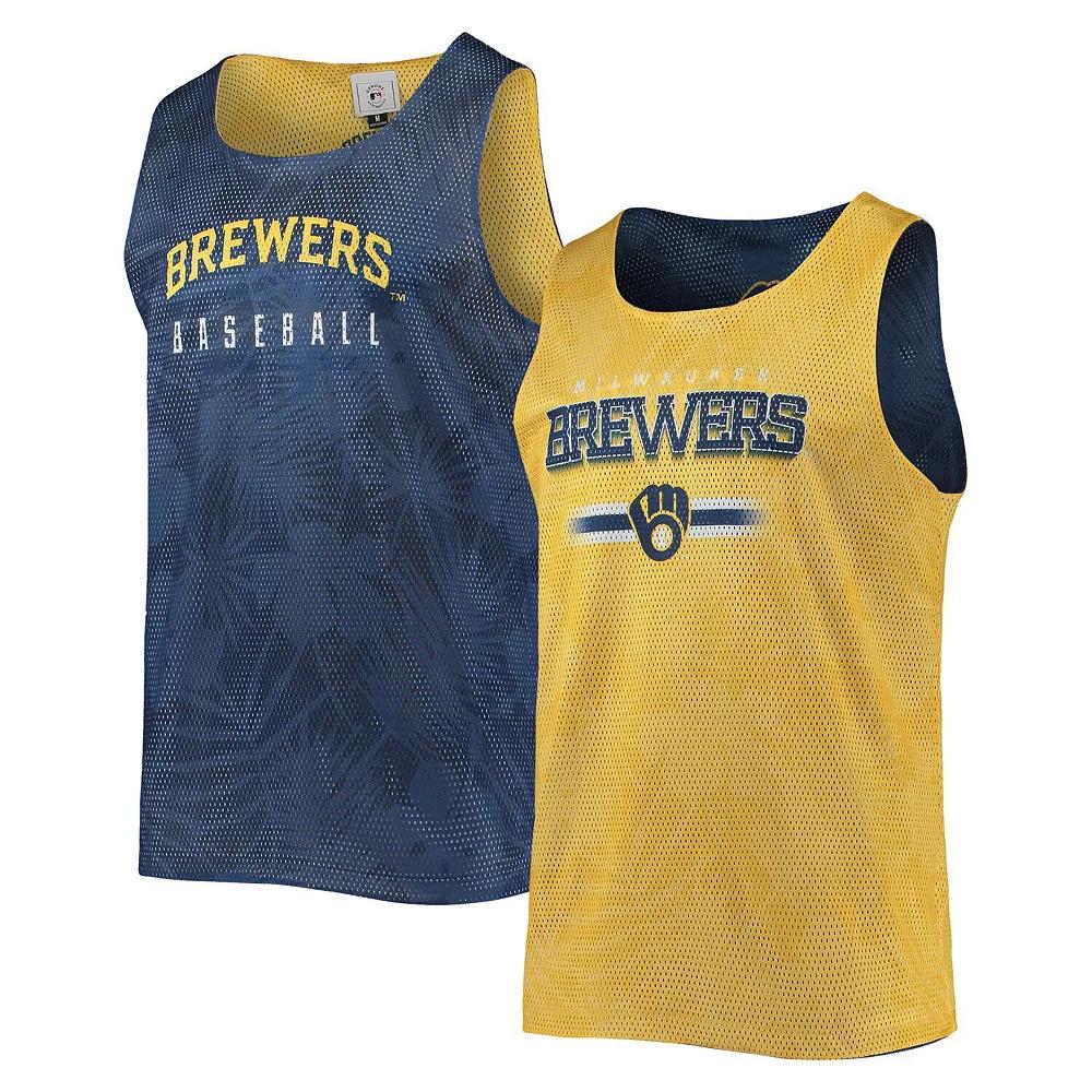 Men's FOCO Navy/Gold Milwaukee Brewers Floral Reversible Mesh Tank Top,  Product Image