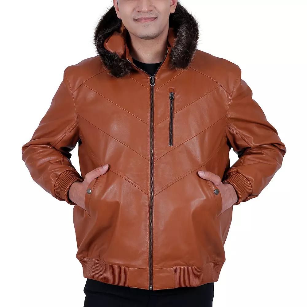 A cut above the rest. Instantly upgrade your look with this mens hooded leather jacket from Franchise Club. A cut above the rest. Instantly upgrade your look with this mens hooded leather jacket from Franchise Club. Midweight warmth rating Lambskin leather construction Attached hood with faux-fur collar Zippered chest pocket Zip front 3-pocket Long sleevesFIT & SIZING Classic fitFABRIC & CARE Shell: Aniline lambskin leather Lining: satin Dry clean Imported Size: XL. Color: Med Beige. Gender: male. Age Group: adult. Material: Polyester.