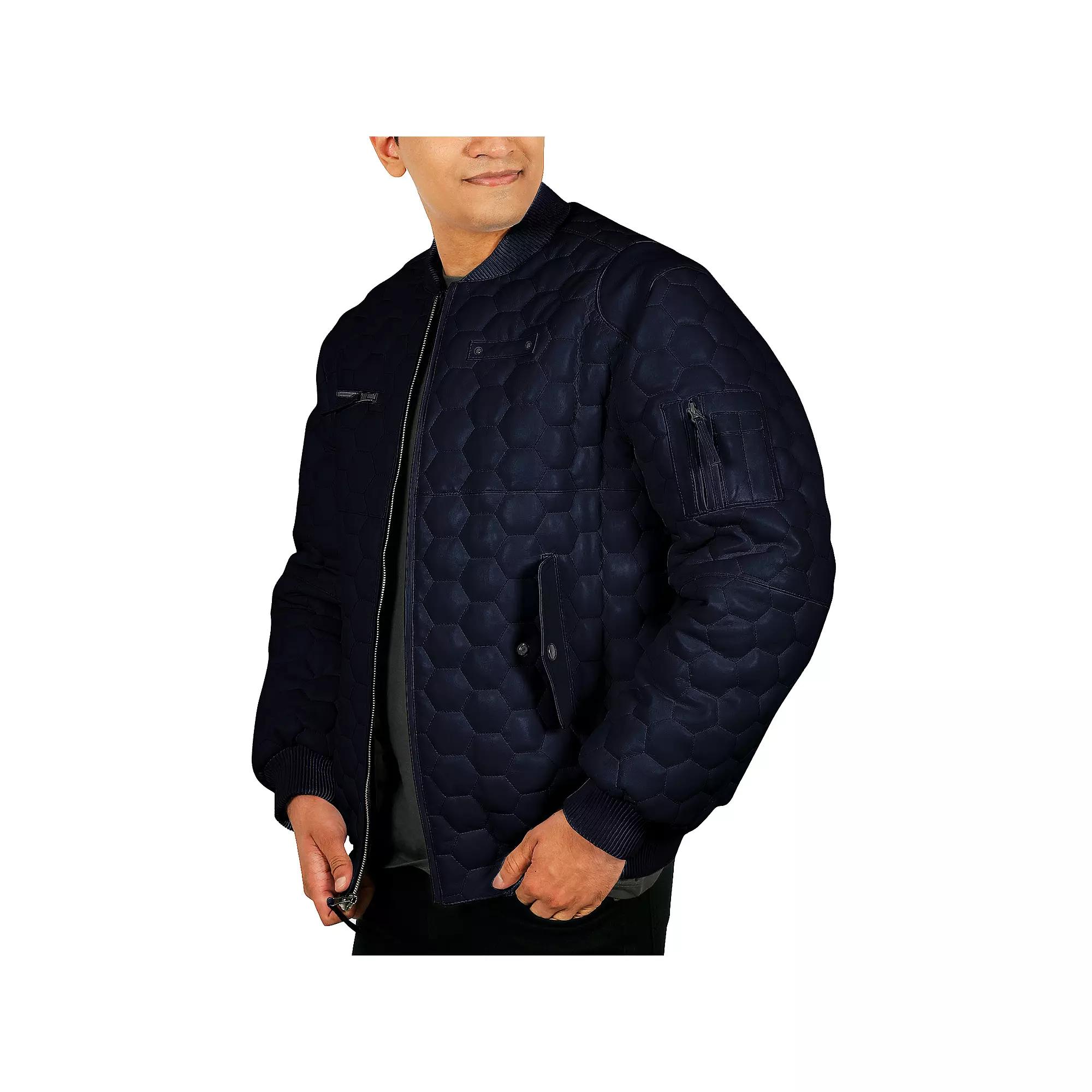 Iconic style. Combat the cold in style with this mens Franchise Club bomber jacket. Iconic style. Combat the cold in style with this mens Franchise Club bomber jacket. Midweight warmth rating Lambskin leather construction Zipper front Multiple interior and exterior pockets Long sleevesFABRIC & CARE Shell: Aniline lambskin leather Lining: satin Fill: polyester Dry clean Imported Size: 4XL. Color: Navy. Gender: male. Age Group: adult. Material: Polyester|Leather.