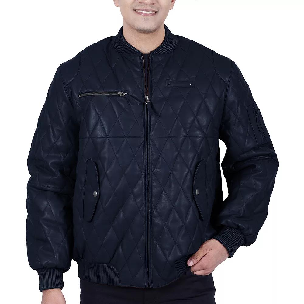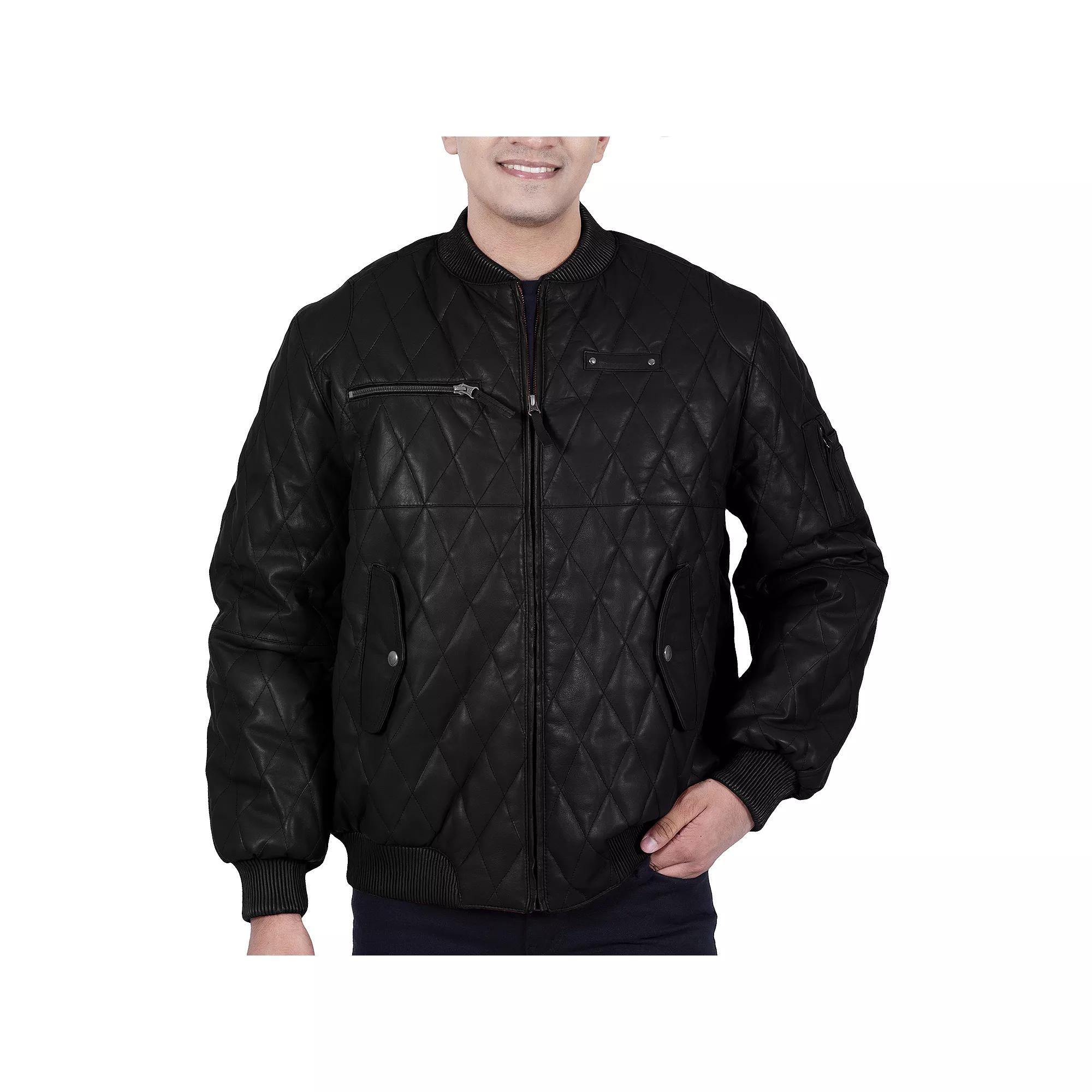 Tame the elements in comfort and style with this mens Franchise Club quilted leather bomber jacket. Tame the elements in comfort and style with this mens Franchise Club quilted leather bomber jacket. Midweight warmth rating Lambskin leather construction Quilted design Zipper front Multiple interior and exterior pockets Long sleevesFABRIC & CARE Shell: Aniline lambskin leather Lining: satin Fill: polyester Dry clean Imported Size: 3XL. Color: Black. Gender: male. Age Group: adult. Material: Polyester|Leather.