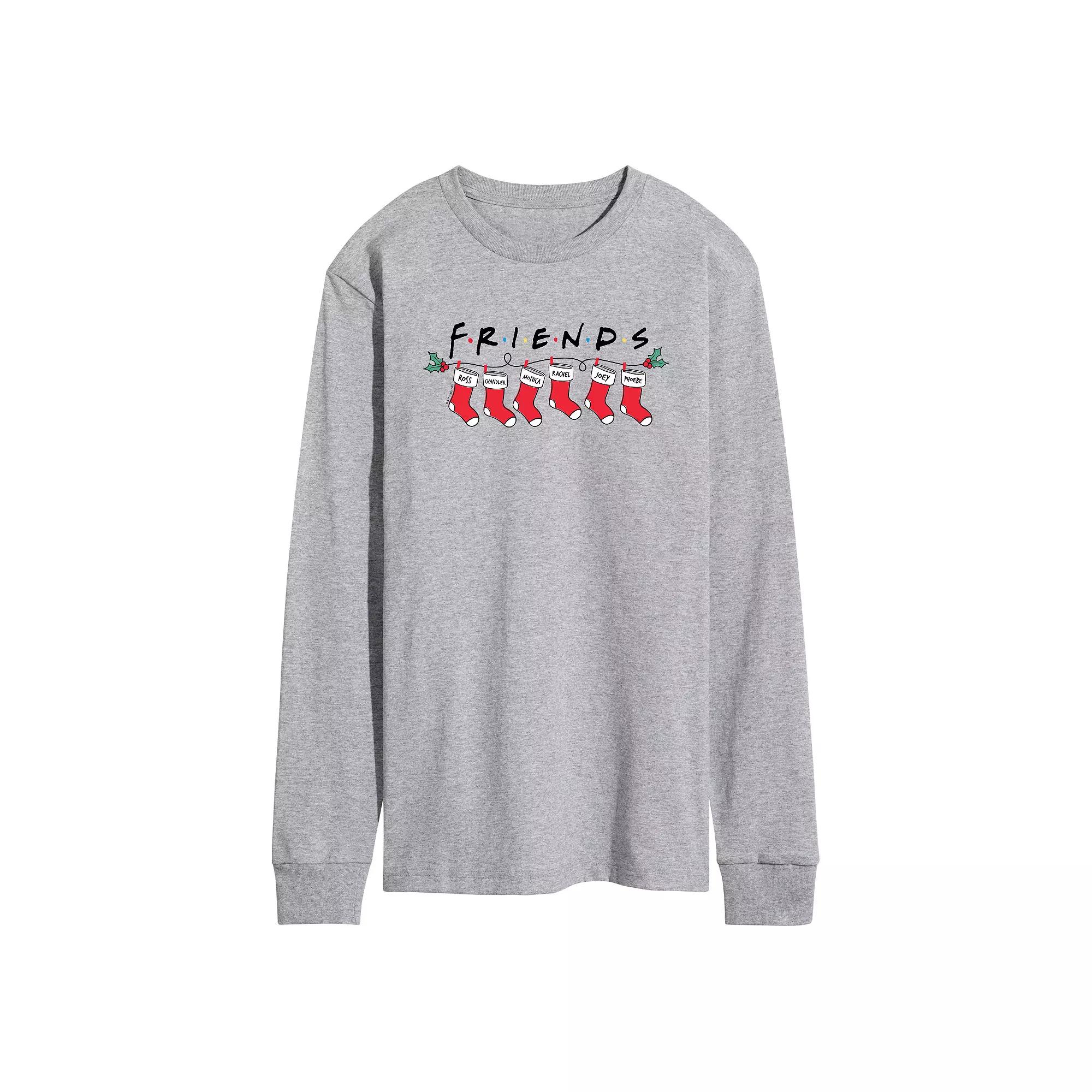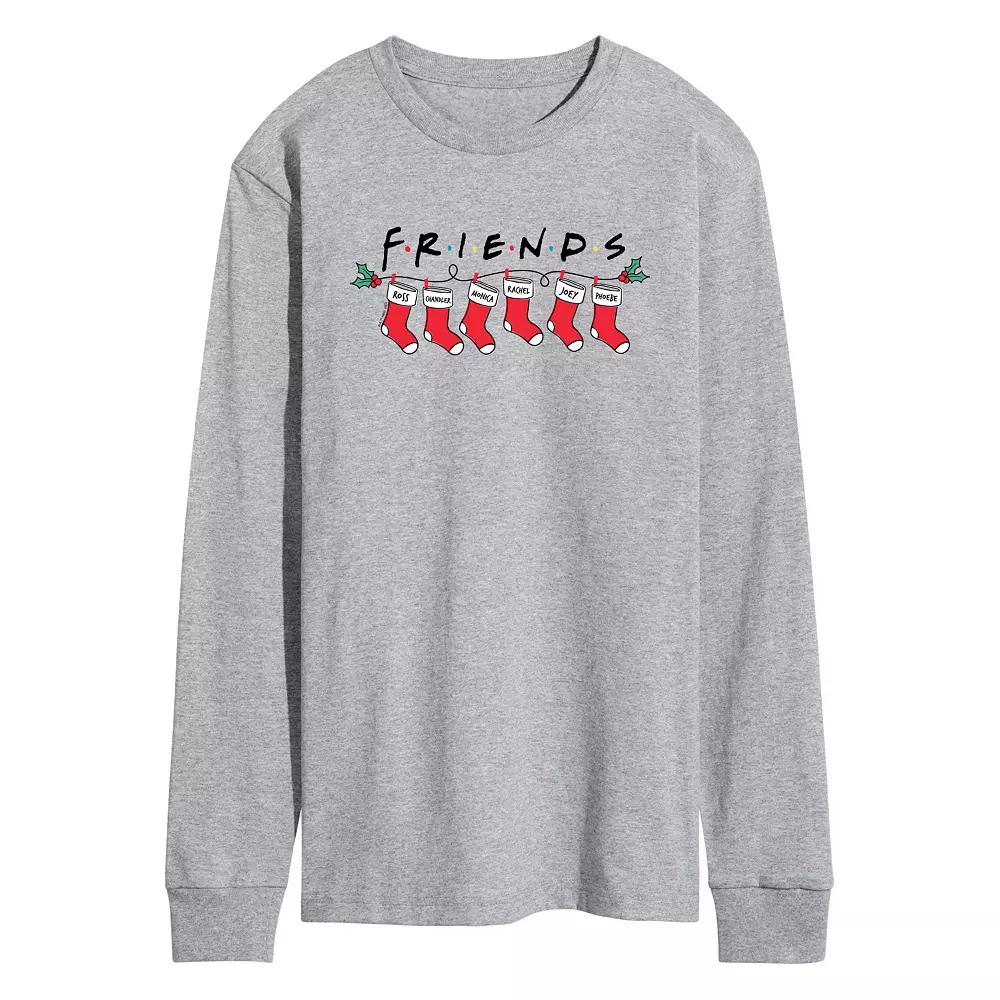 He will love showing off his style in this Mens Friends Stockings Long Sleeve Graphic Tee. FEATURES Crewneck Long sleeveFABRIC & CARE Solid Color: Cotton ; Heather Colors: Cotton/Polyester Machine wash Imported Color: Med Grey. Gender: male. Age Group: adult.