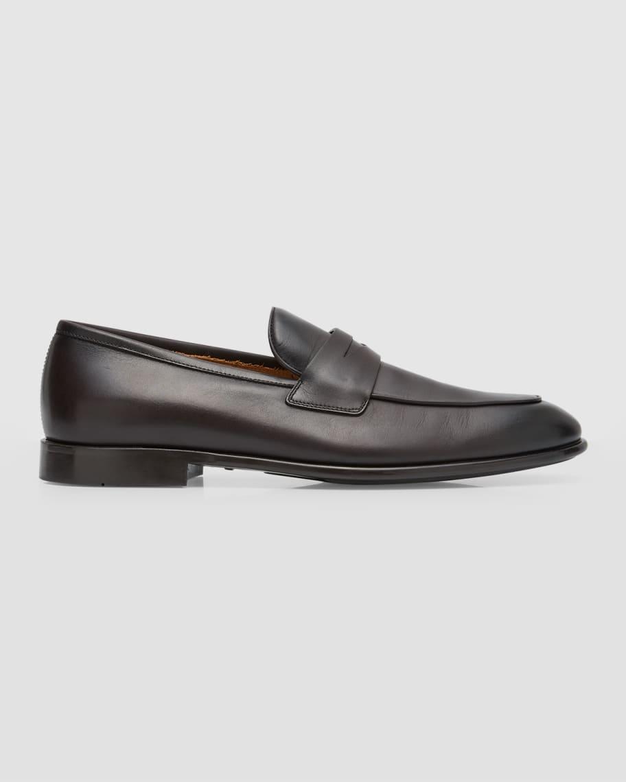 Crafted of smooth leather, the Funes loafers by FERRAGAMO highlight a sleek profile with streamlined details. Leather upper Almond toe Slips on Rubber sole Lining: Leather Professionally clean Made in Italy ABOUT THE BRAND Italian designer Salvatore Ferragamo began his journey in 1927 with a vision of creating the worlds most beautiful shoes. The label expanded to menswear in the 1970s, and remains famed for its made-in-Italy pieces. The craftsmanship inherent in its shoes is also found in accessories like sunglasses, belts and ties. The brands signature Gancini logo-a backwards horseshoe-can be found on its classic loafers and fine leather goods. Mens Shoes - Ferragamo Mens Shoes > Ferragamo > Saks Fifth Avenue > Barneys. FERRAGAMO. Color: Hickory. Size: 8.