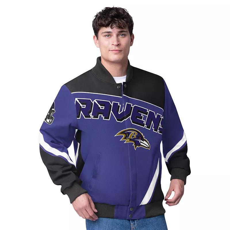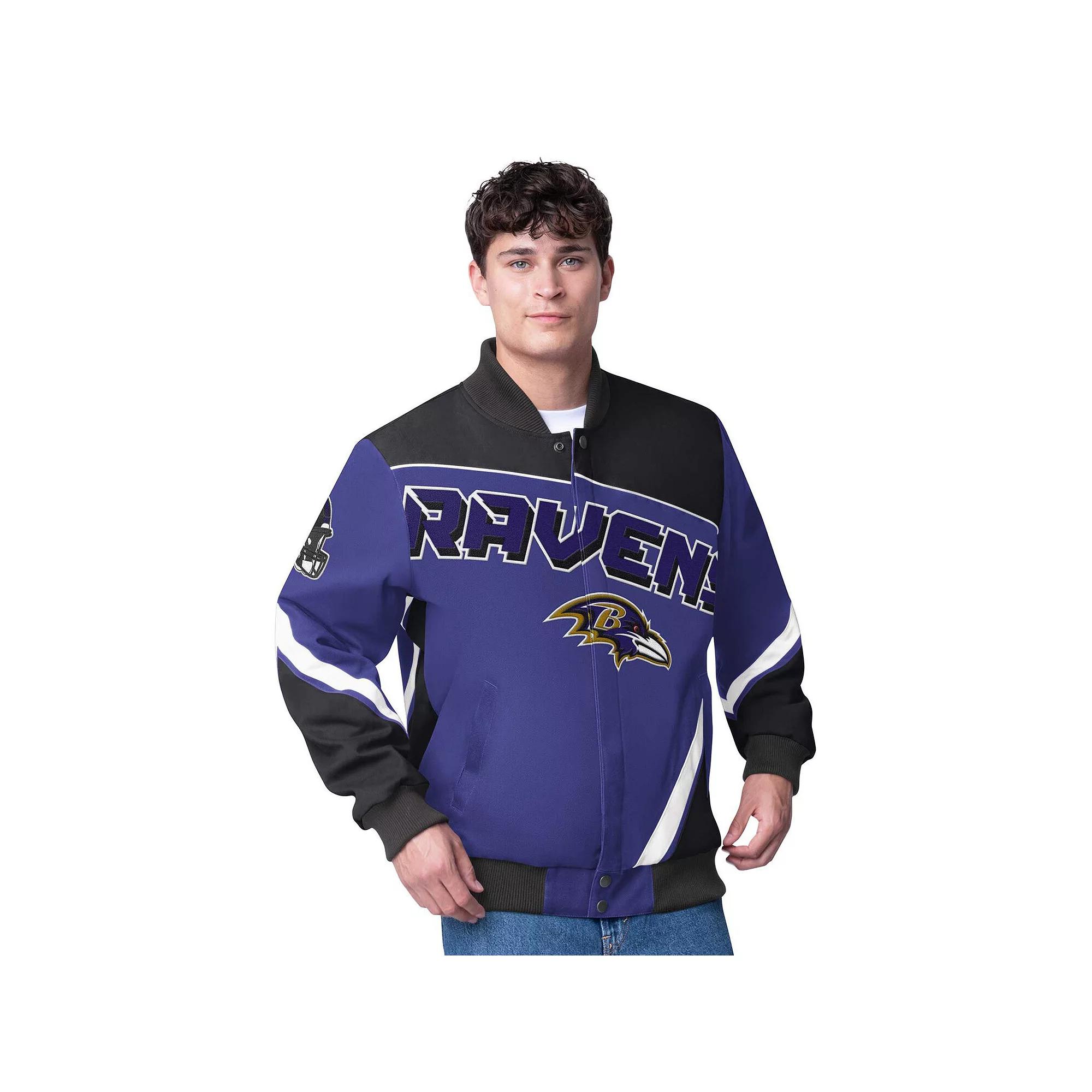Show your Baltimore Ravens pride with this G-III Extreme Maximum Racing Full-Zip Jacket. This full-zip jacket features a durable 100% cotton construction and tackle twill appliques of the team logo, name, and city on the chest and back, making it a statement piece for any Baltimore Ravens fan. With its heavyweight design, this jacket is ideal for braving the cold during those exciting winter games.Show your Baltimore Ravens pride with this G-III Extreme Maximum Racing Full-Zip Jacket. This full-zip jacket features a durable 100% cotton construction and tackle twill appliques of the team logo, name, and city on the chest and back, making it a statement piece for any Baltimore Ravens fan. With its heavyweight design, this jacket is ideal for braving the cold during those exciting winter games.PRODUCT FEATURESFull ZipBrand: G-III ExtremeImportedTwo side pocketsMachine washTackle twill applique secondary logo graphic at both sleevesOfficially licensedTackle twill applique team logo, name and city on chest and backLong sleeveRibbed knit cuffs and waist hemHeavyweight jacket suitable for cold temperaturesMaterial: 100% Cotton Size: 3XL. Color: Purple. Gender: male. Age Group: adult.