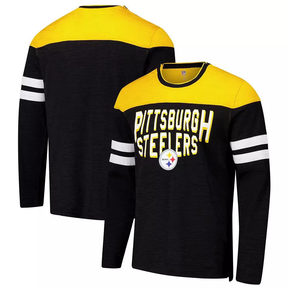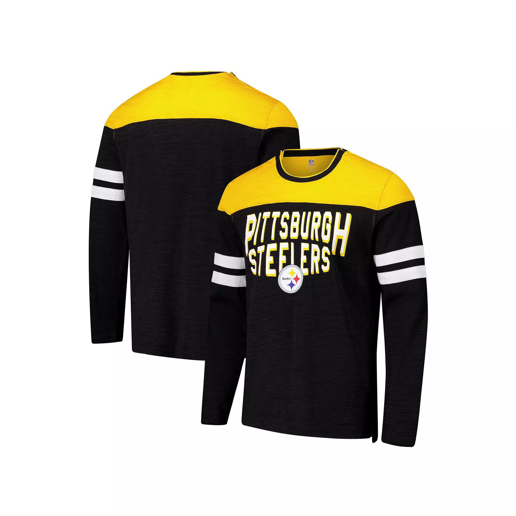 Represent your favorite NFL team in style with this Pittsburgh Steelers Adaptive Hail Mary Long Sleeve T-Shirt. From G-III Sports by Carl Banks, this tee is designed with magnetic snaps at the shoulder seams to allow for easier dressing for those who have limited mobility. Sewn-on stripes and printed team details ensure your Pittsburgh Steelers pride is never lacking, while comfort isnt sacrificed.Represent your favorite NFL team in style with this Pittsburgh Steelers Adaptive Hail Mary Long Sleeve T-Shirt. From G-III Sports by Carl Banks, this tee is designed with magnetic snaps at the shoulder seams to allow for easier dressing for those who have limited mobility. Sewn-on stripes and printed team details ensure your Pittsburgh Steelers pride is never lacking, while comfort isnt sacrificed.PRODUCT FEATURESClose all fasteners and turn inside out prior to washOfficially licensedMagnets safety testedImportedCrew neckLong sleeveMachine wash, tumble dry lowMaterial: 55% Cotton/45% PolyesterHem with side splits for comfort and movabilityThis garment contains magnets which can cause death or serious injury. Consult a physician before wearing if you have an implanted medical device or pacemaker. If a magnet is exposed, keep out of the reach of children and dispose of it. If magnets are swallowed, seek immediate medical attention.Allows those with limited mobility to dress themselves more comfortablySewn-on sleeve stripesBrand: G-III Sports by Carl BanksFeatures magnetic snaps at shoulders to easily pull over head, while still resembling traditional seamsTeam name and logo screen printed across the chest Color: Black. Gender: male. Age Group: adult.
