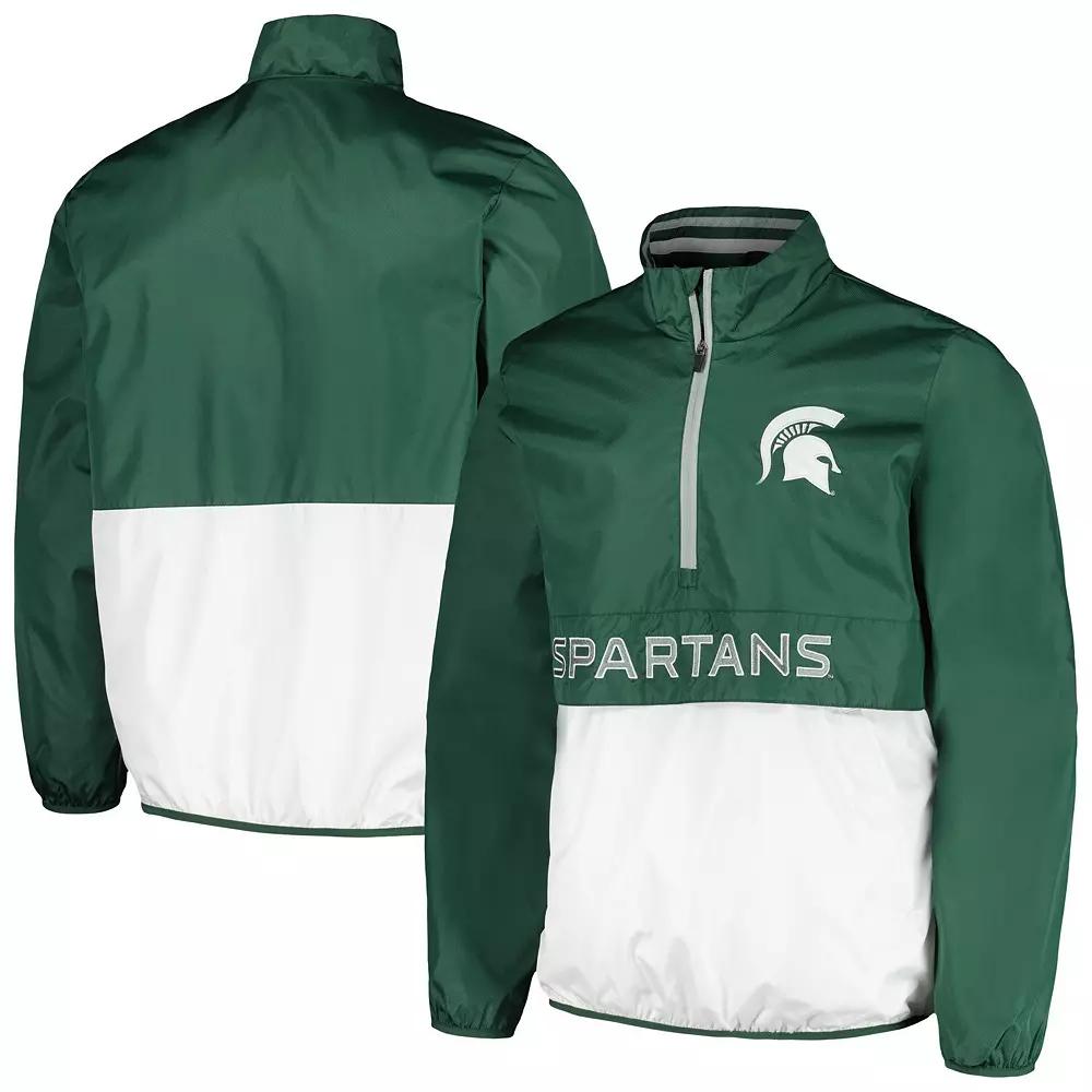 Layer up as you cheer on the Michigan State Spartans with this half-zip Cornerman top from G-III Sports by Carl Banks. A lightweight design keeps your body temperature balanced, while mesh lining offers a bit of extra breathability. Distinct Michigan State Spartans graphics are the perfect finish. Zipper garage Long sleeve Material: 100% Polyester Imported Two front pockets Overlay flap Interior locker loop Lightweight top suitable for mild temperatures Machine wash, tumble dry low 1/2-Zip Officially licensed Mesh lining Brand: G-III Sports by Carl Banks Sewn-on stripes in collar Elastic cuffs and hem Embroidered fabric applique Mock neck