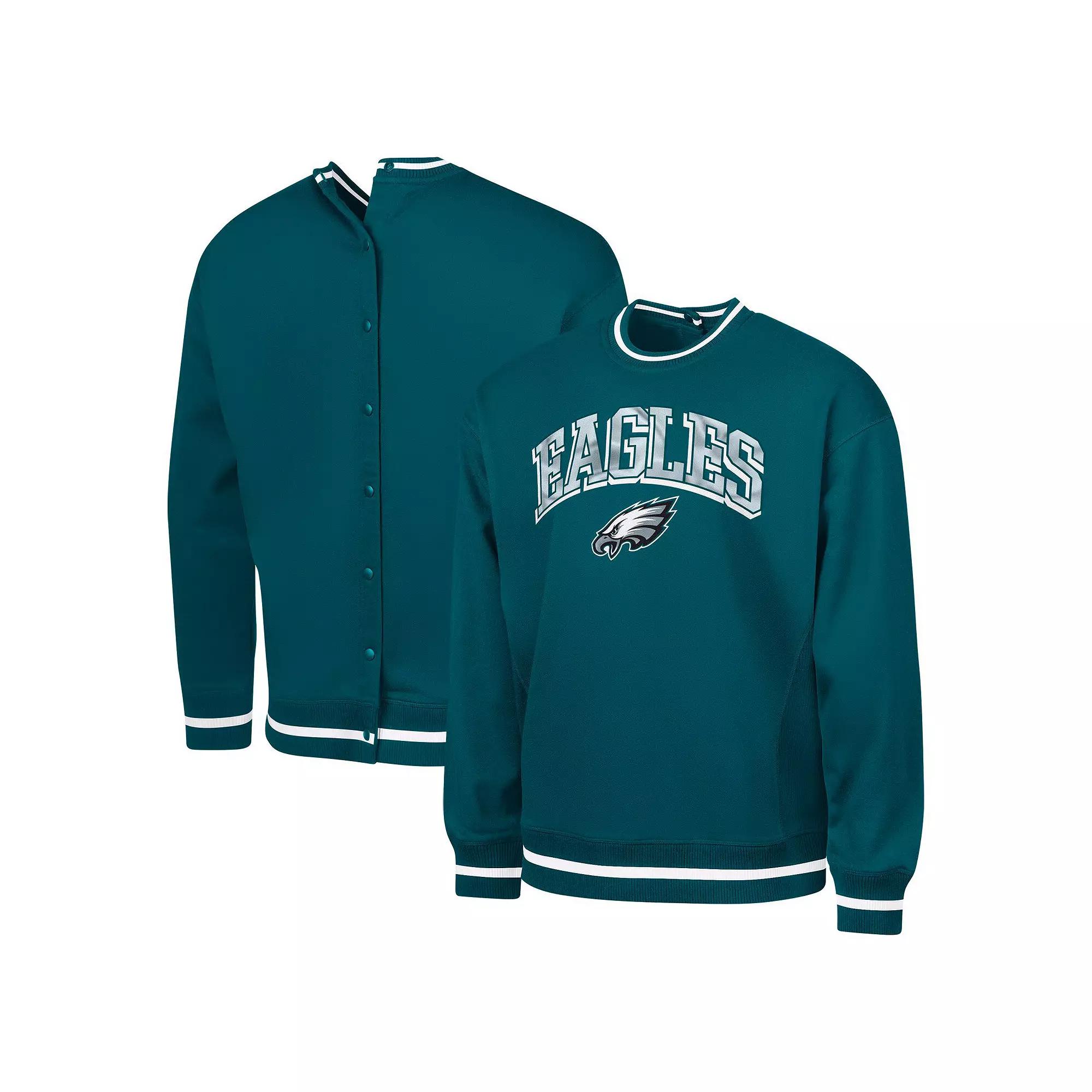 Represent your favorite NFL team in style with this Philadelphia Eagles Adaptive Blocker Fleece Sweatshirt. From G-III Sports by Carl Banks, this pullover is designed with snap buttons along the center back to allow for easier dressing for those who have limited mobility. Printed graphics and striped rib-knit trims finish the look to ensure your Philadelphia Eagles pride is never lacking, while comfort isnt sacrificed.Represent your favorite NFL team in style with this Philadelphia Eagles Adaptive Blocker Fleece Sweatshirt. From G-III Sports by Carl Banks, this pullover is designed with snap buttons along the center back to allow for easier dressing for those who have limited mobility. Printed graphics and striped rib-knit trims finish the look to ensure your Philadelphia Eagles pride is never lacking, while comfort isnt sacrificed.PRODUCT FEATURESMaterial: 60% Cotton/40% PolyesterSnap-button closures placed along center back to aid caregivers when dressing someonePulloverImportedMachine wash, tumble dry lowOfficially licensedLong sleeveConstruction requires less mobility and allows seamless dressing for both partiesMidweight sweatshirt suitable for moderate temperaturesButtons are secured in place once snapped togetherTeam graphic printed at front center chestRib-knit collar, cuffs and hem with woven stripesBrand: G-III Sports by Carl Banks Size: XL. Color: Green. Gender: male. Age Group: adult.